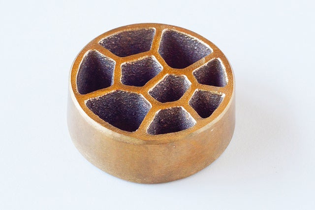 銅イオンの抗菌効果により水の腐食を防ぎ、花が167%以上長持ちに!砂型鋳造特有の凹凸が表面積を広げ、抗菌・消臭効果を高めてくれる効果も期待できます。毎日の水換えは不要!「KAMAHACHI Kenzan」を使い、花のある生活を楽しんでください。