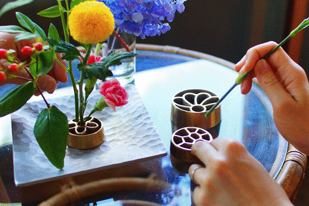 針がないのに花を飾れて、魅せても美しい剣山。