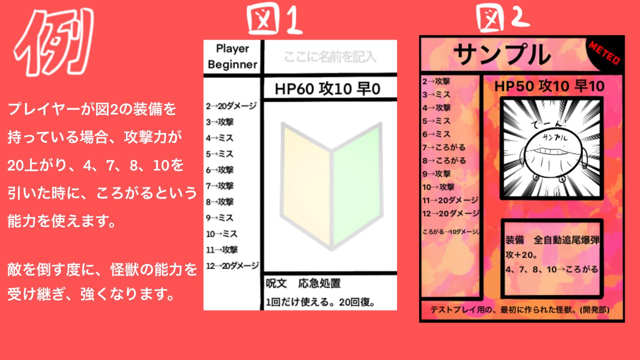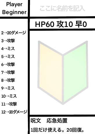 早さ順に行動し、サイコロを二つふり、合計値の能力を使い、戦闘を行います。戦闘はサイコロ二つで行われ、シンプルで誰でも簡単です。