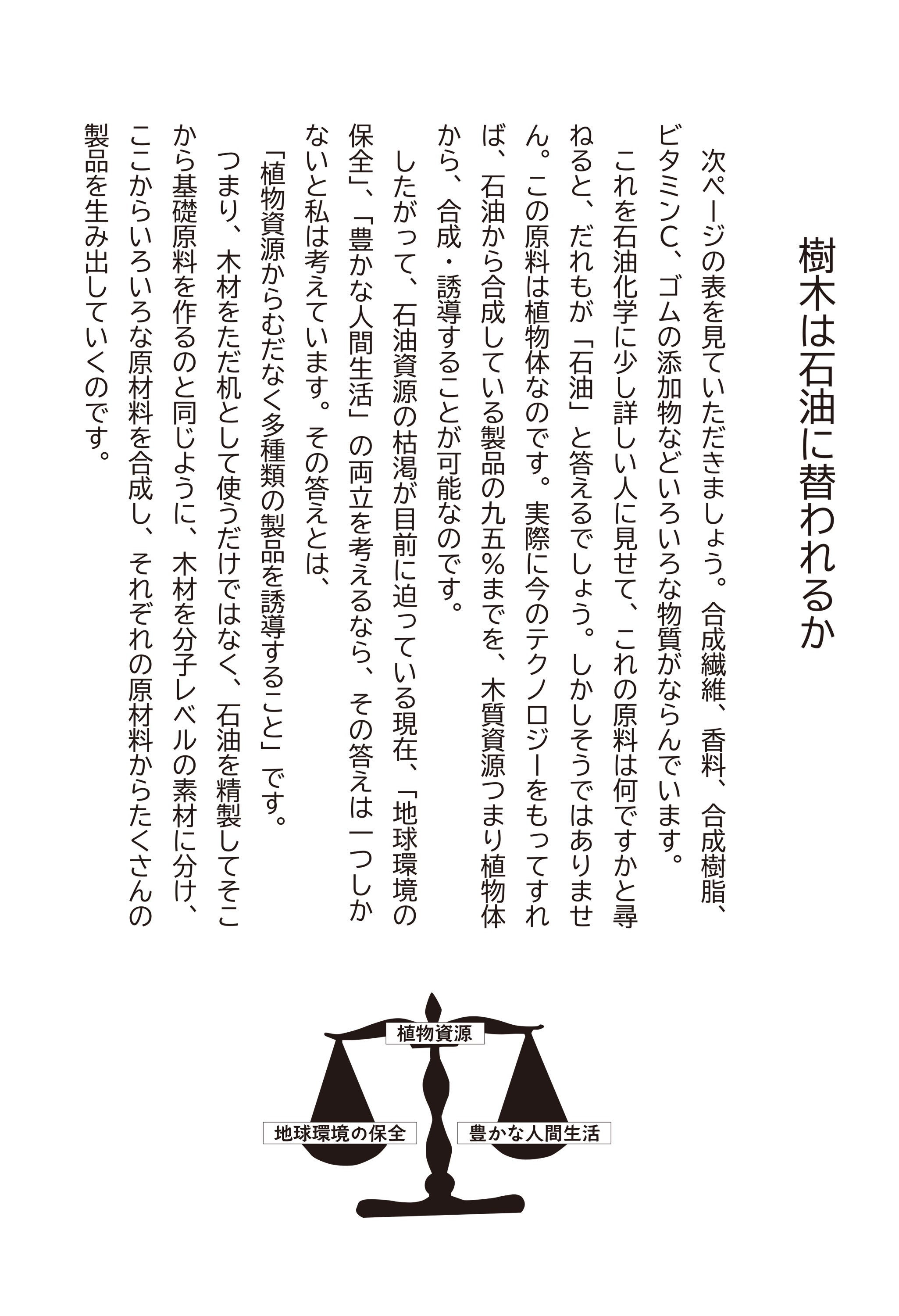 ・森林の二つの役割 ・ハイテク製品の原料は石油、