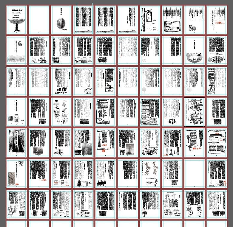 2021/11/30 15:33ご予約と温かい言葉、ありがとうございます。本日最終日、目標達成の61%という状況ですが、この書物を読んでみたいという方へ本をお届けできることを嬉しく思います。同時に行っていました編集業務は、まだまだこれからです。イラストレーターというソフトで行っているのですが、こうやってズラリと並べてみますと、けっこう見ごたえがあります。終了後も引き続き、こちらで活動報告ができるそうですので、進捗をお伝えできればと存じます。予定通り12月中にお届けをと考えますが、もし校正が長引き遅れる場合にも、こちらでお知らせする予定です。 もっと見る