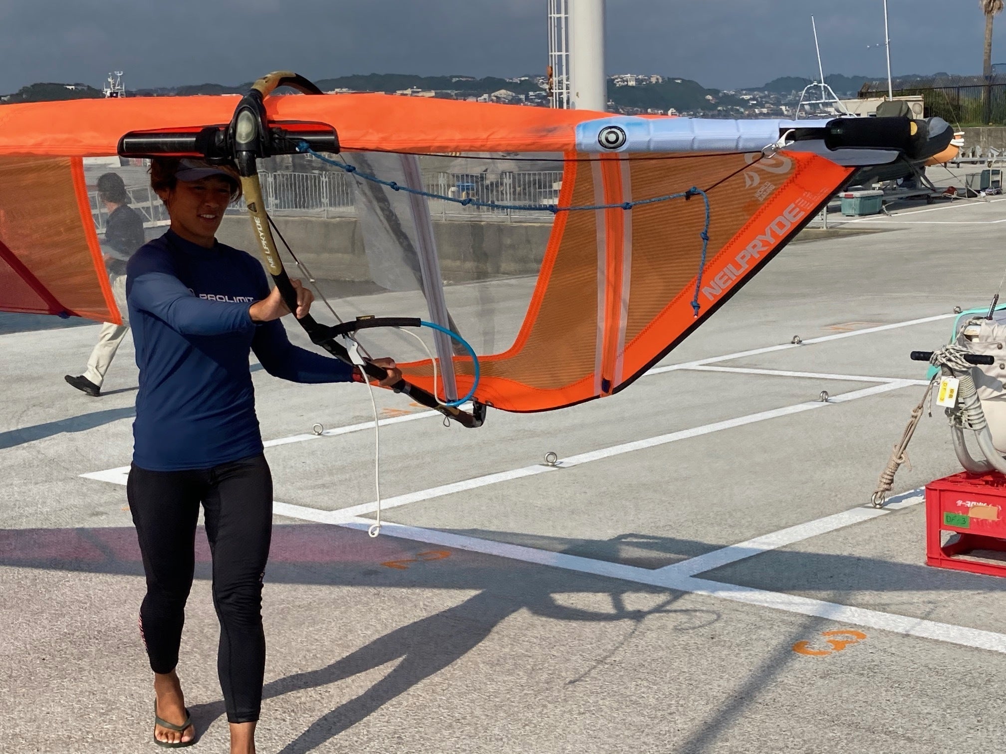 軽々運んでいるように見えますが、セール(帆)はなんと20kgあります!