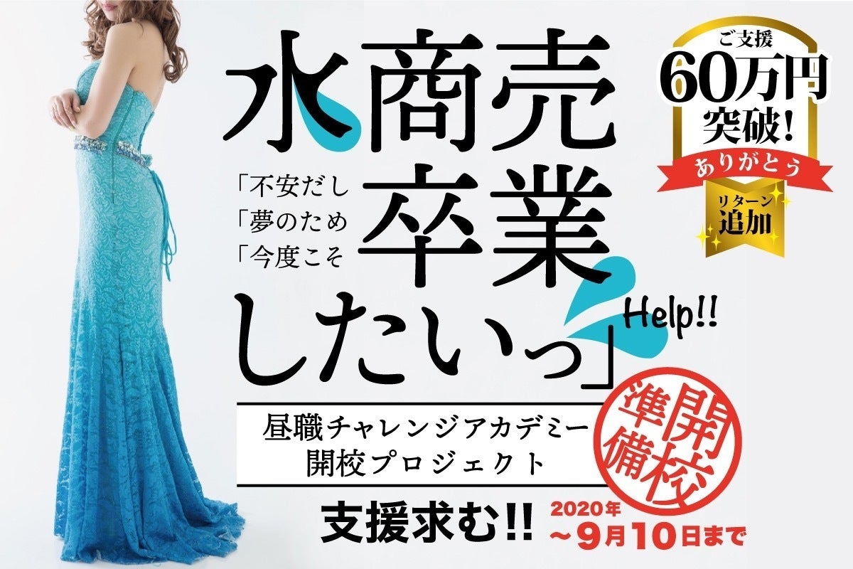 本当は水商売を『卒業』したいけど昼職は壁が高くて・・・ そんな方々の背中を押すべく「雇用保証&転職支援」付ビジネススクール【昼職チャレンジアカデミー】を開校します。彼女たちが水商売で得たスキルを活かして一般社会で活躍する未来を創っていくプロジェクトの応援をお願いします!