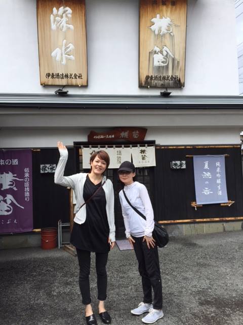 酒蔵をバックに幸せそうな北山の姿。