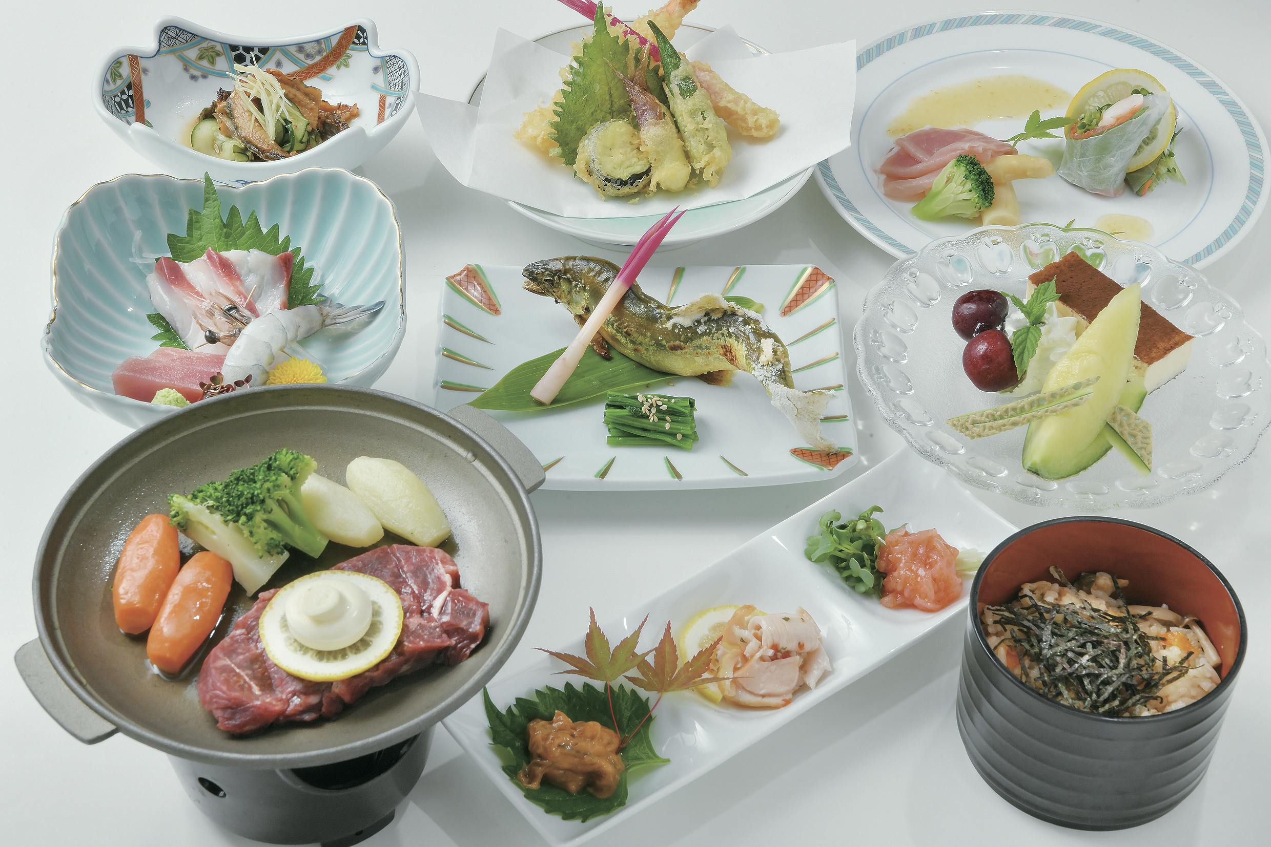 返礼品のお食事券5,000円分でご利用できる「ひば道後山高原荘」の会席料理です。季節に応じたお料理を提供いたします。会席料理は電話での予約制なので返礼品でご利用の場合は予約電話をください。ひば道後山高原荘電話番後0824-84-2170になります!