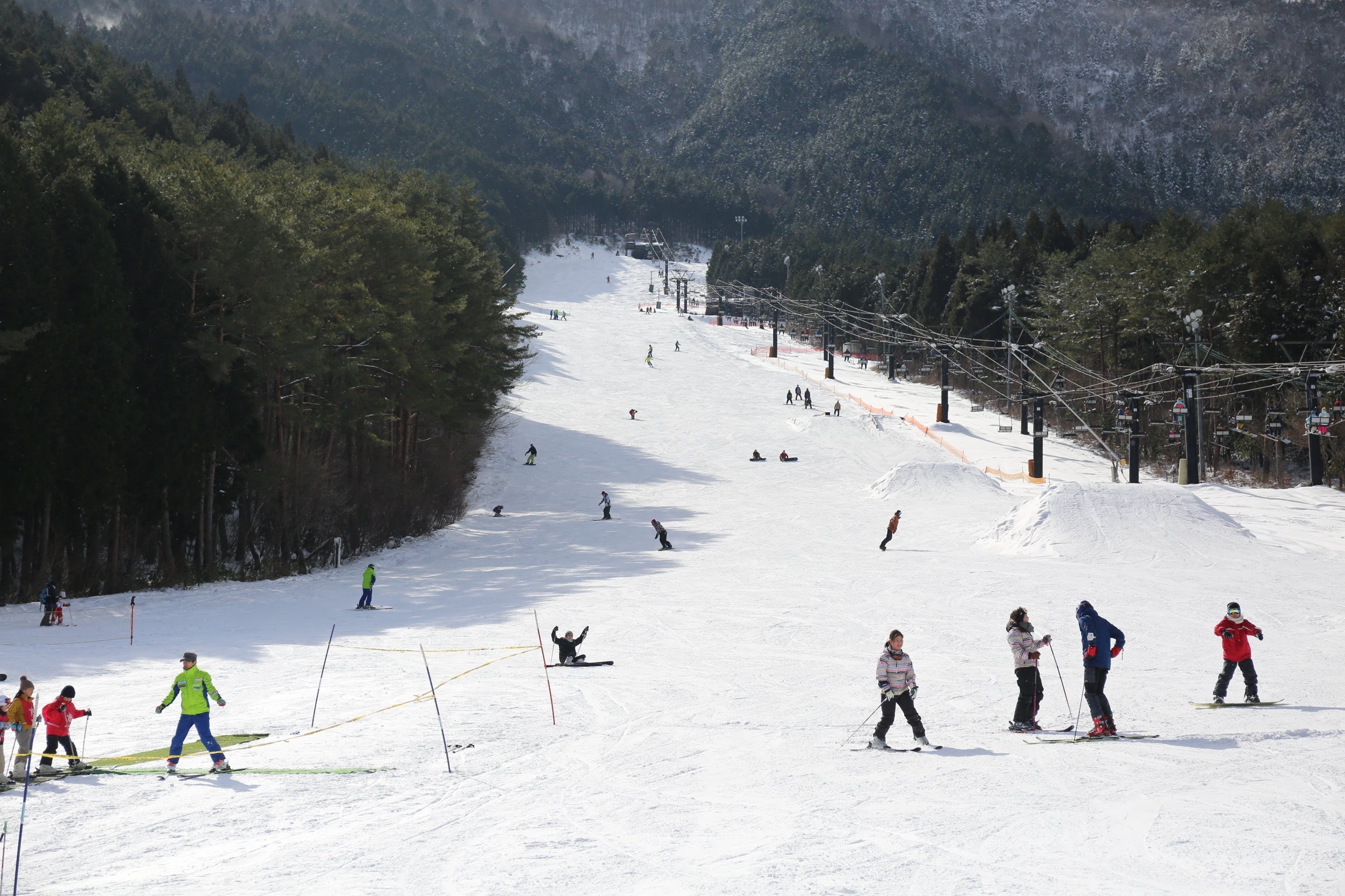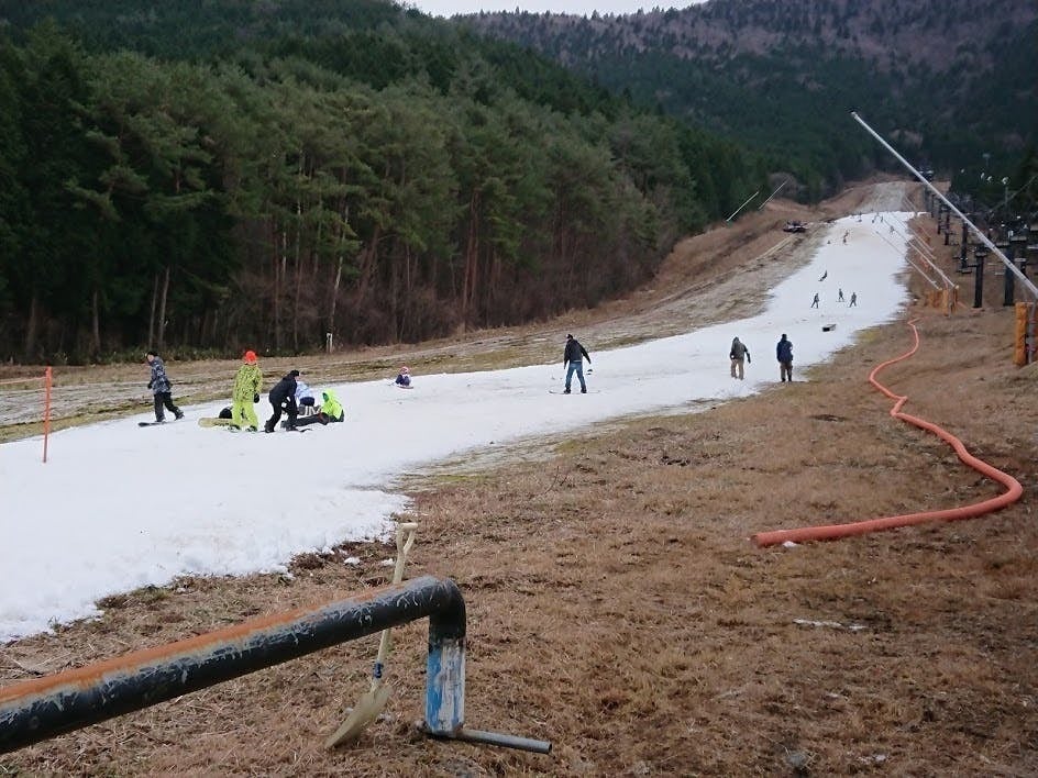 下記写真1枚目は、積雪が十分にあるゲレンデの様子です。しかしながら、近年は暖冬積雪不足に見舞われ、ご満足いただけない可能性も十分に想定されますので、その点ご了承いただきますようお願いいたします。2枚目の写真は、昨年の暖冬積雪不足時のゲレンデ状況です。今シーズンも暖冬の場合、このようなゲレンデとなる可能性がございます。