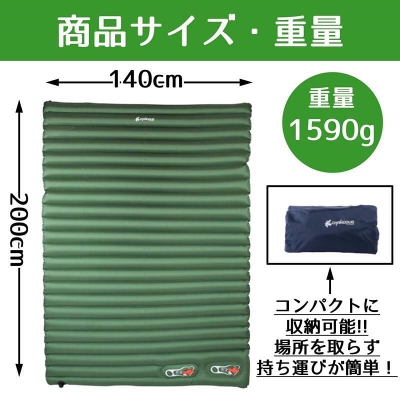 縦:140cm、横:200cm (ダブルベッドサイズ相当 睡眠時大人2人分、着座時3~4人分相当)
