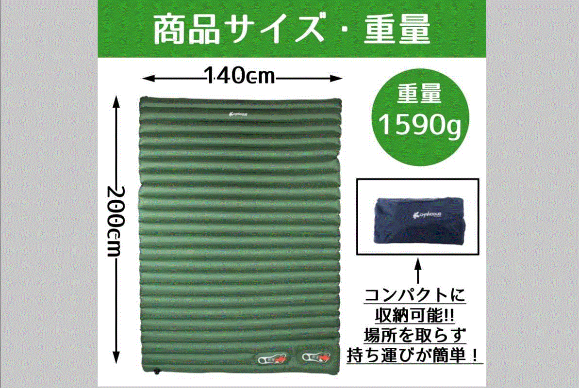 普段は公園などでレジャーシートの代わりに使ってのんびりしたり、屋内での即席ベッドとして使用したり、森や海辺でのキャンプやBBQなどの本格的アウトドアでの活用はもちろん、「普段の場所で寝られない」さまざまなシチュエーションで大助かり。アウトドアシーンにおいて有るのと無いのとでは快適さにかなり差が出ます。