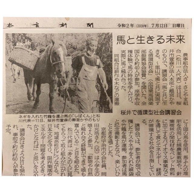 2020.07.12 奈良新聞掲載(馬耕講習会の様子)