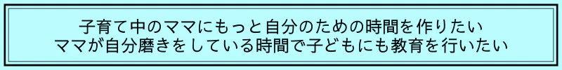私たちは、子どもがのびのびと成長し、より幸せな家庭を築いていくためには、まずはママがいきいき輝くことがとても大切だと感じています。