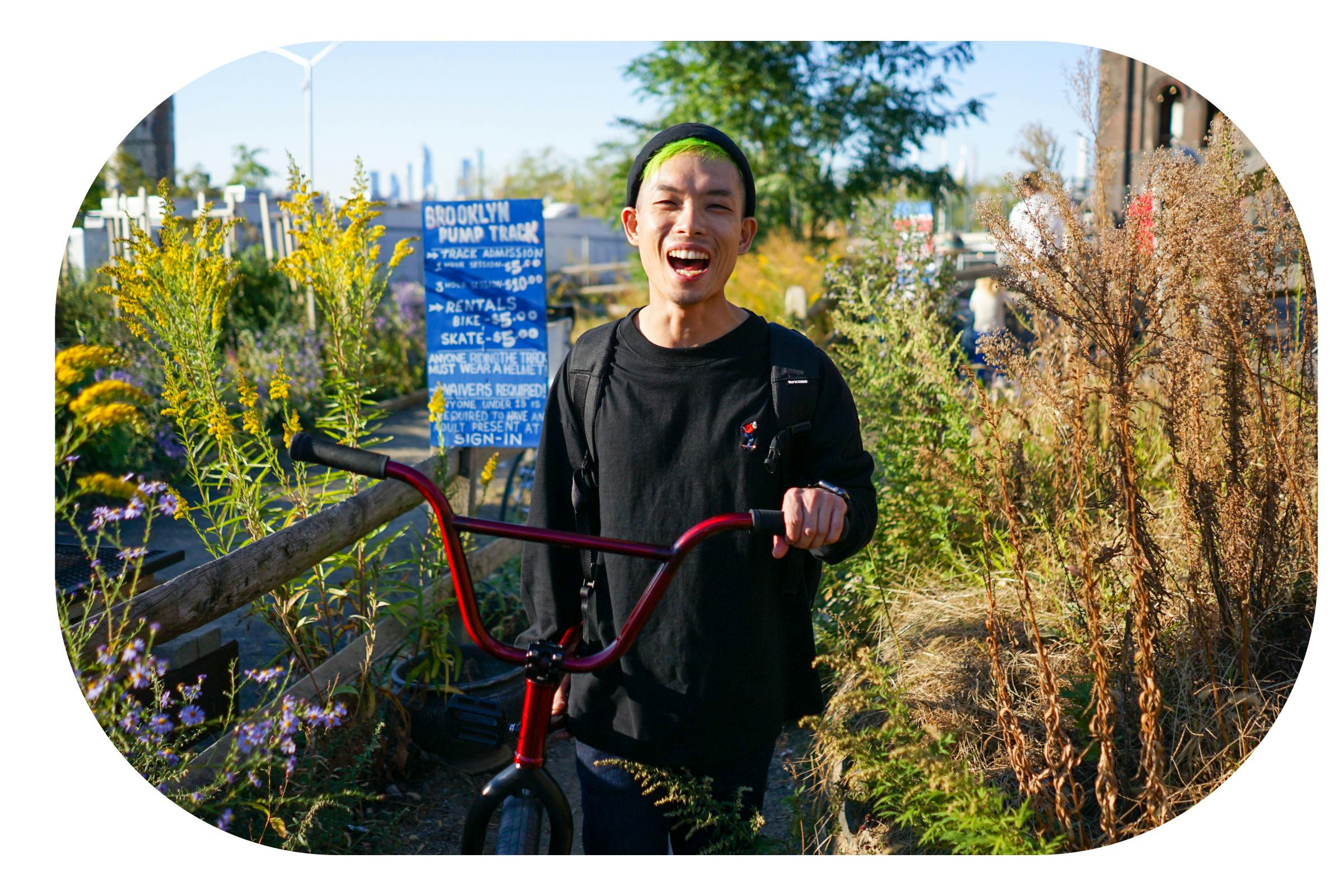 15歳から双子の兄・KOHと一緒に始めたBMXは二人の想像力を膨らませた。「TWINS BMX」として大会やパフォーマンス、講習会を行い全国に活動の場を広げる。