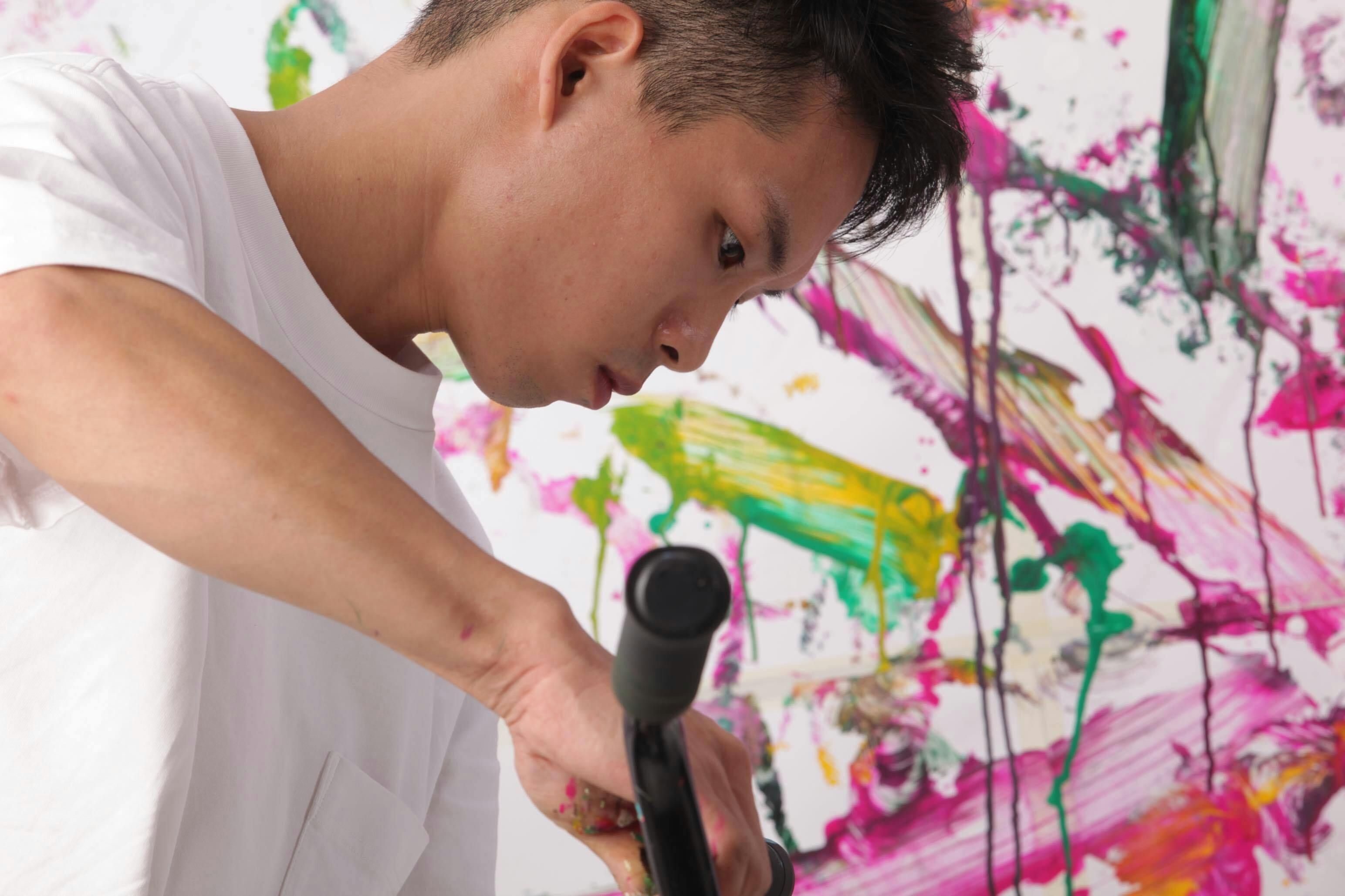 背景用に大きな作品を描き、その後にキャンバス作品を描きました。