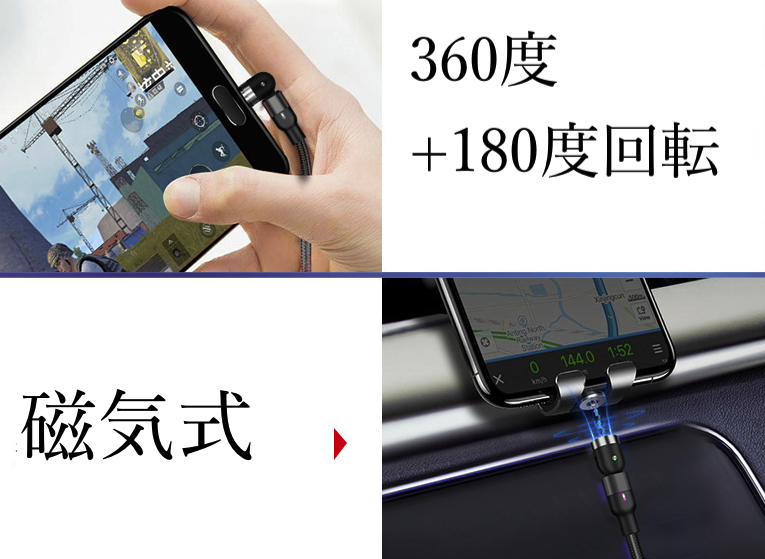 【180°+360°充電可能】180°+360°回転デザインを採用し、充電の角度を自由に調整できます。充電しながらゲームをしたり、動画を見たりする際、コネクタの接続部分が邪魔にならず、快適に楽しむことができます。