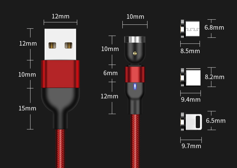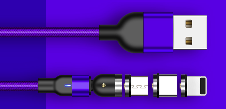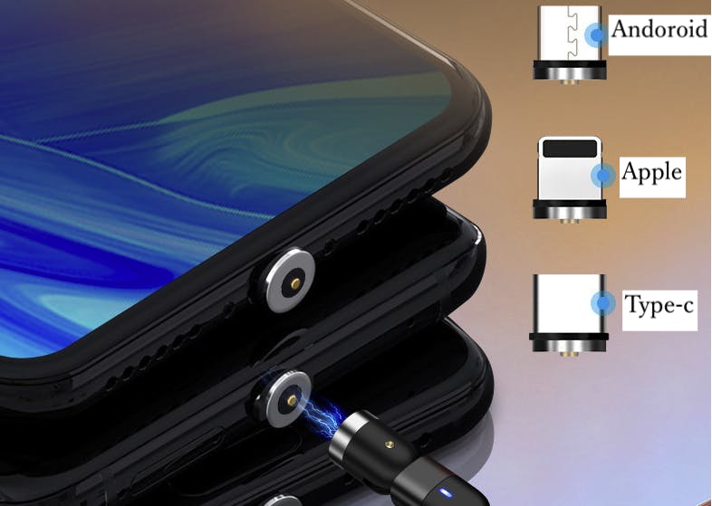 【三つポート対応】一本三役なマグネット式充電ケーブル。Micro USB、Type-C、iproductも対応できますので、ほとんどのスマホ、タブレットに適合します。
