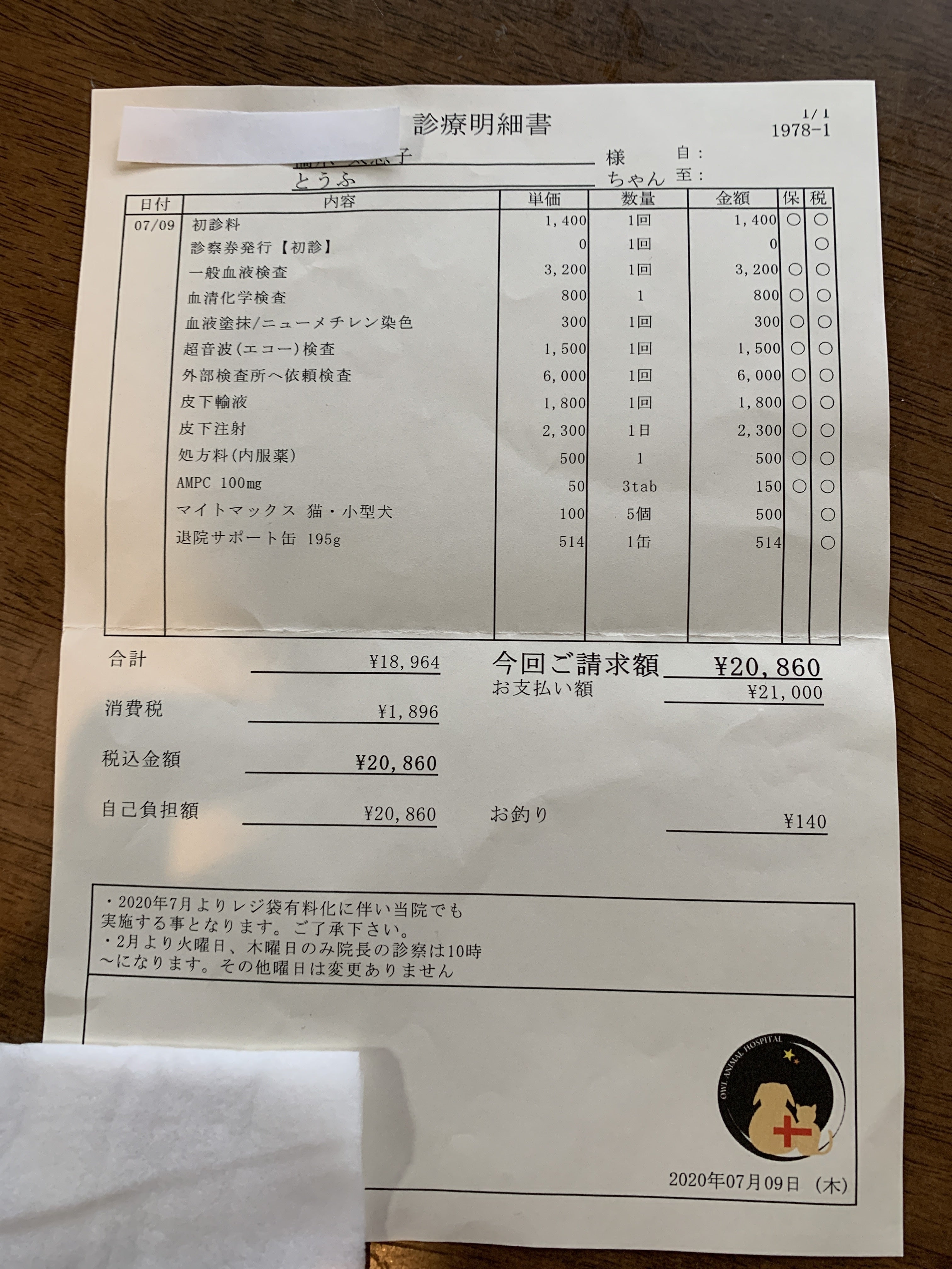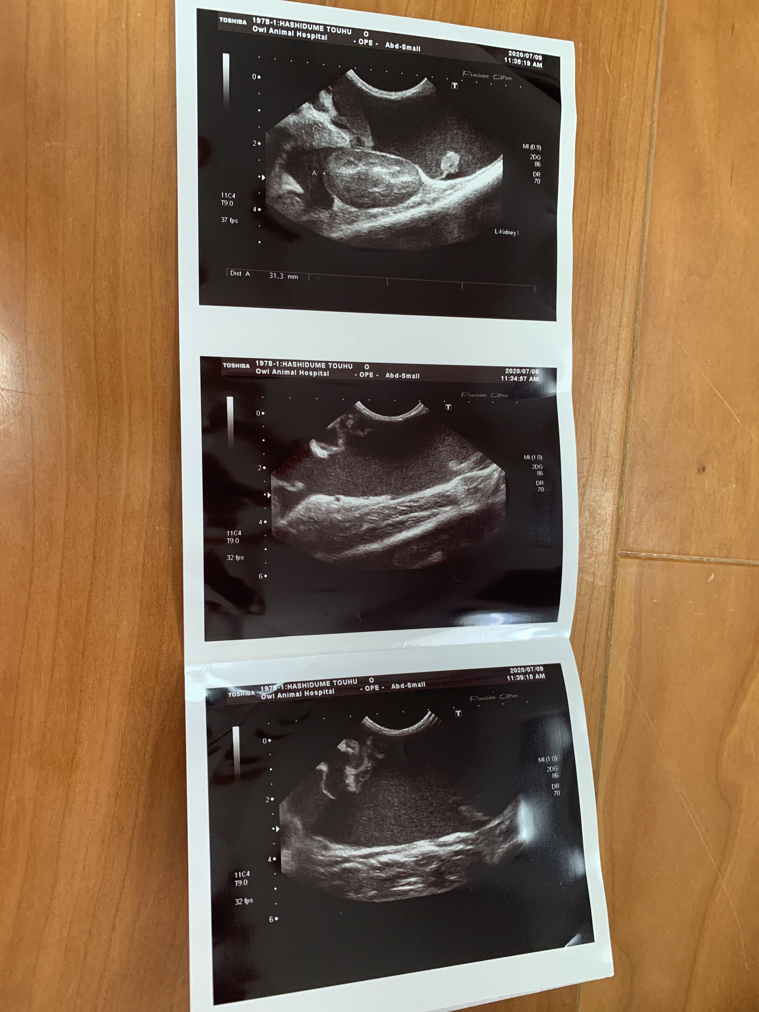 7月9日 朝から病院に連れて行きました。血液検査とエコーの結果