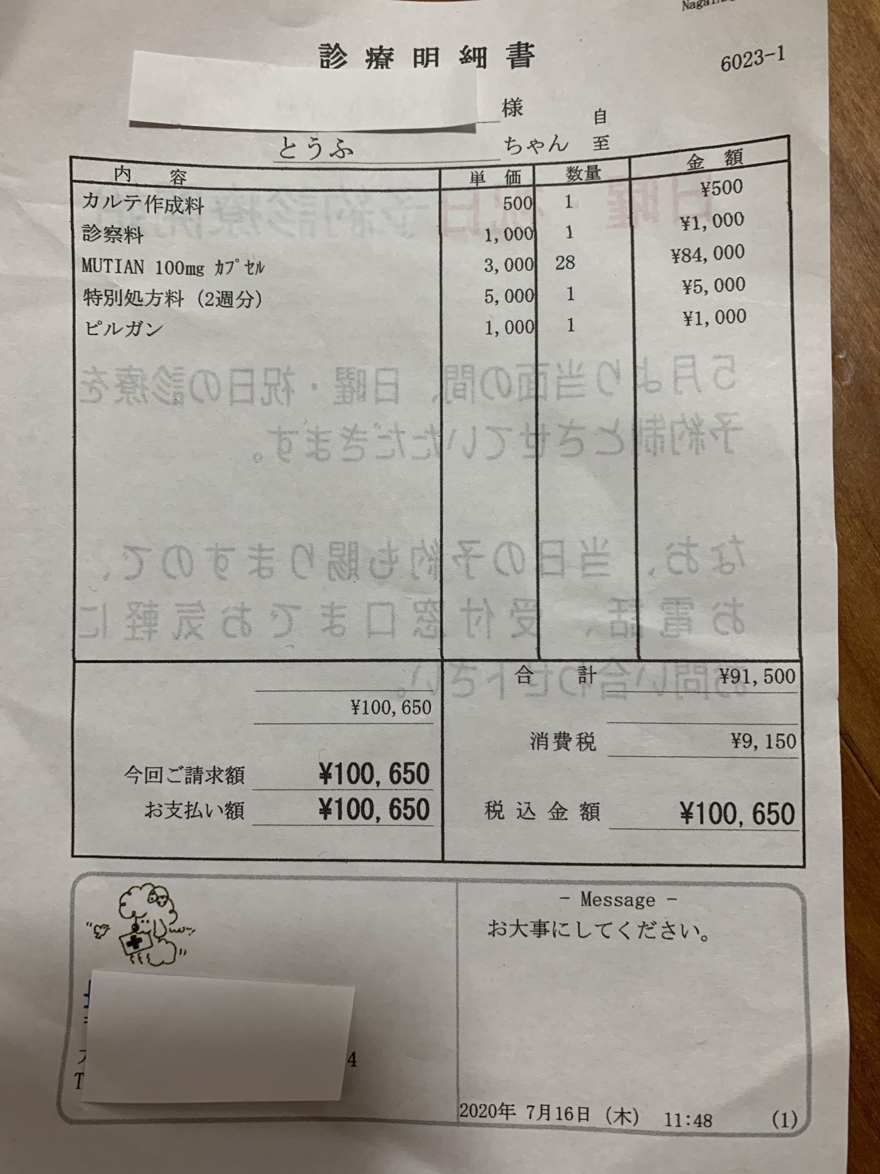 実施中にかかったお薬や治療費 回復状況を活動報告にて随時報告させていただきます。