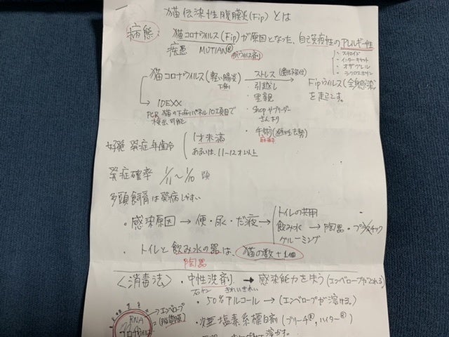 近所の病院での検査結果FIP は陽性と電話で知らされました。詳しくは病院に来てくださいとの事で、息子と病院に着きました。