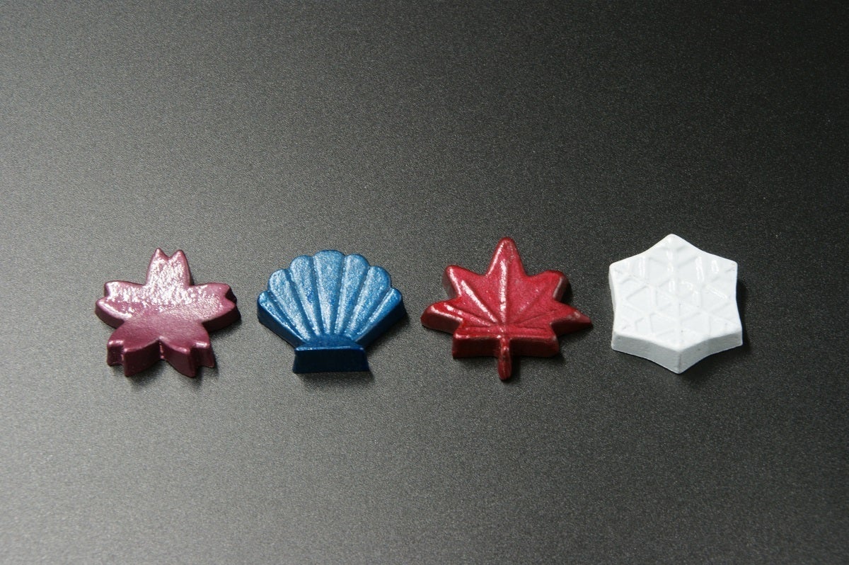 鋳物独特の風合いを活かして、移ろいゆく四季を表現した箸置きを作成しました。