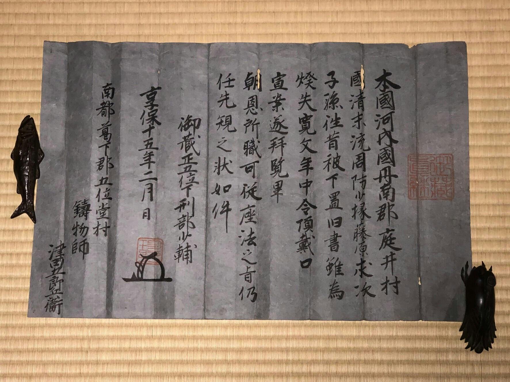 享保15年(西暦1730年)の古文書