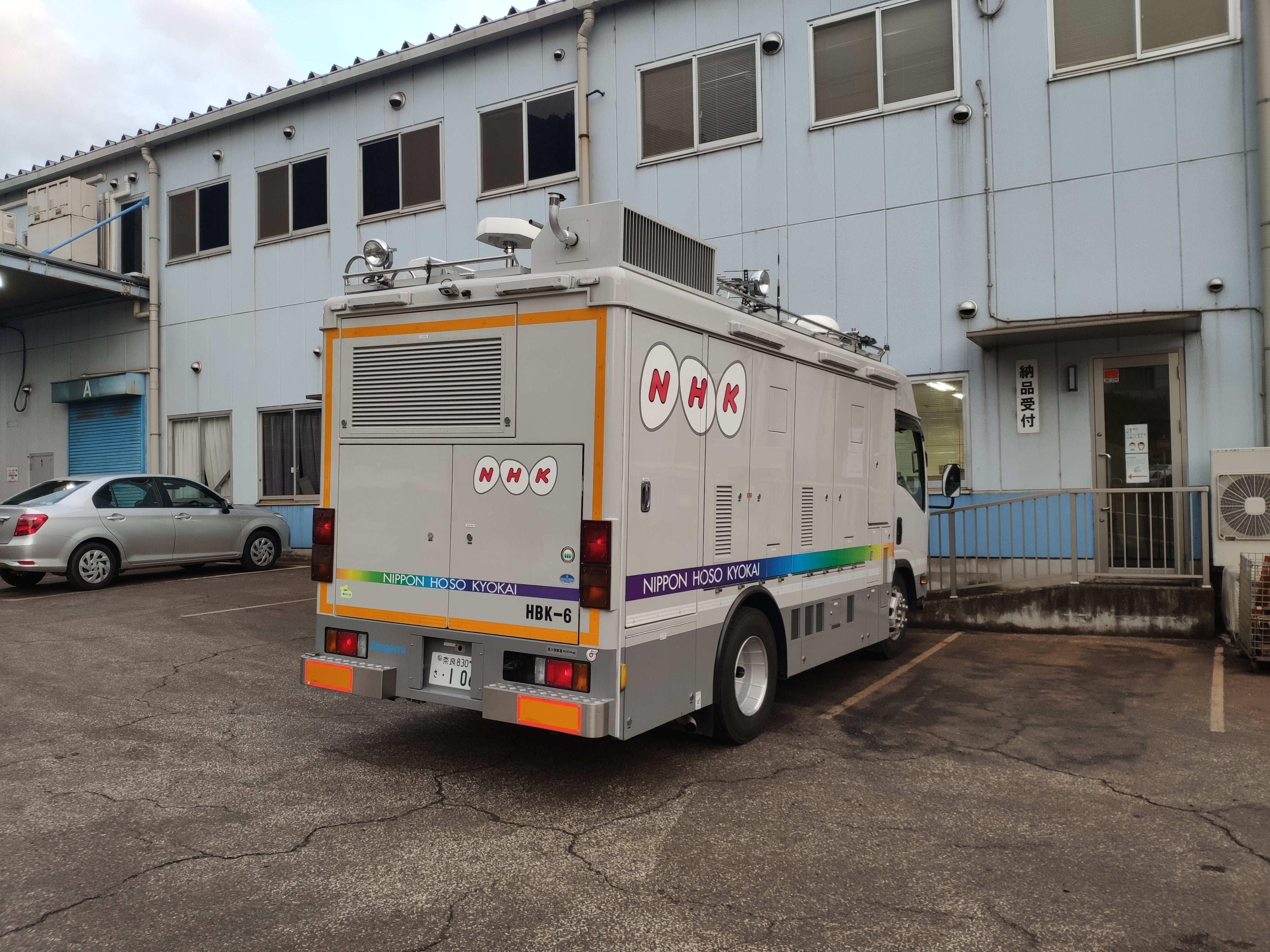 残念ながら、衛星タイプの中継車は撮影できず、こちらは地上で電波を飛ばすタイプの車両だそうです。いろいろあるんですね。