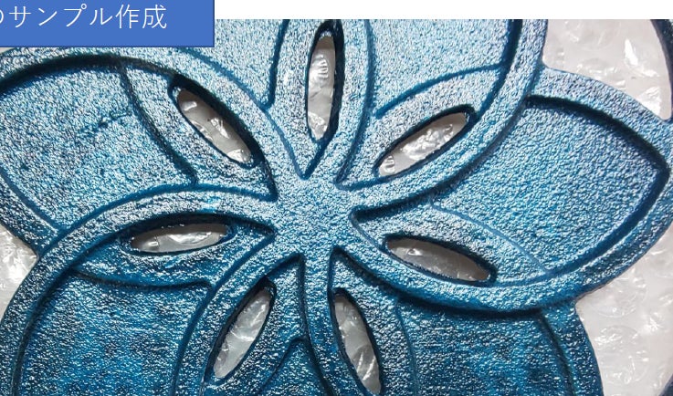 こちらは、鍋敷きの塗装サンプルになります。以前ご紹介したものよりも塗膜を薄く、より鋳物の梨地が手触りとして分かるようにしております。もう少し色味を明るく、色を均一にするために調整中です。