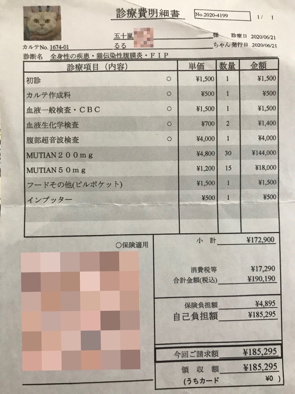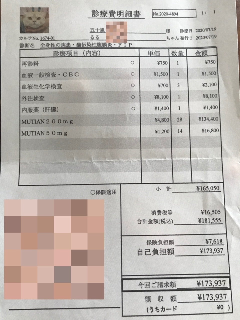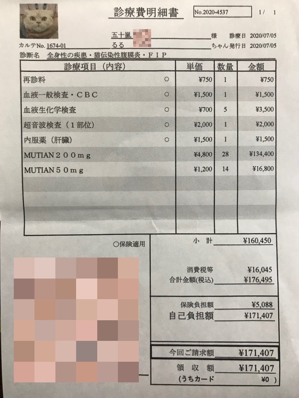 ↑FIP確定後、薬代他
