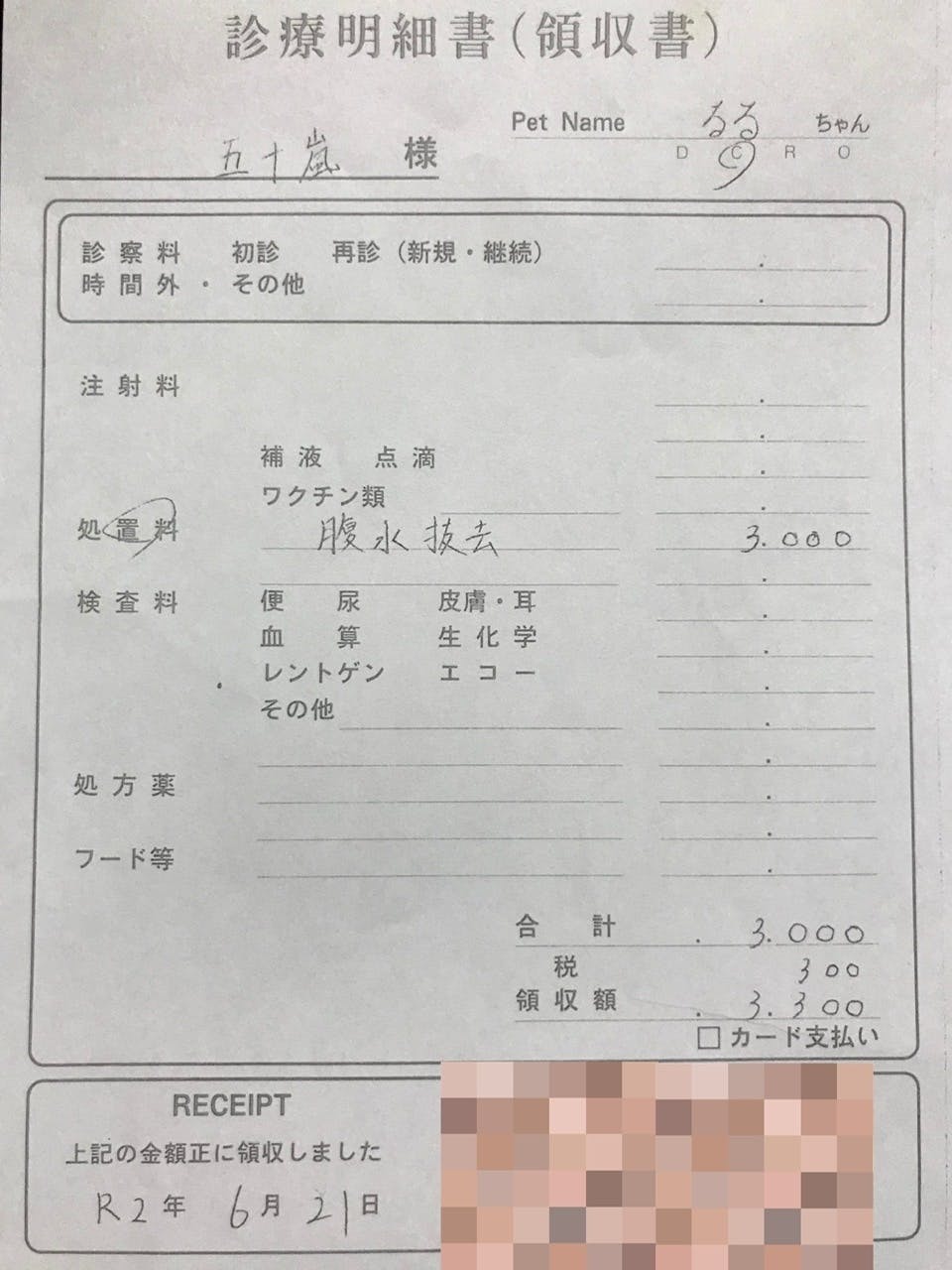検査で血液検査、エコーを見ながら説明してくださり「FIP確定です」と宣言されました。腹水が溜まっているのと肉芽腫があることからウェットドライ混合タイプでした。