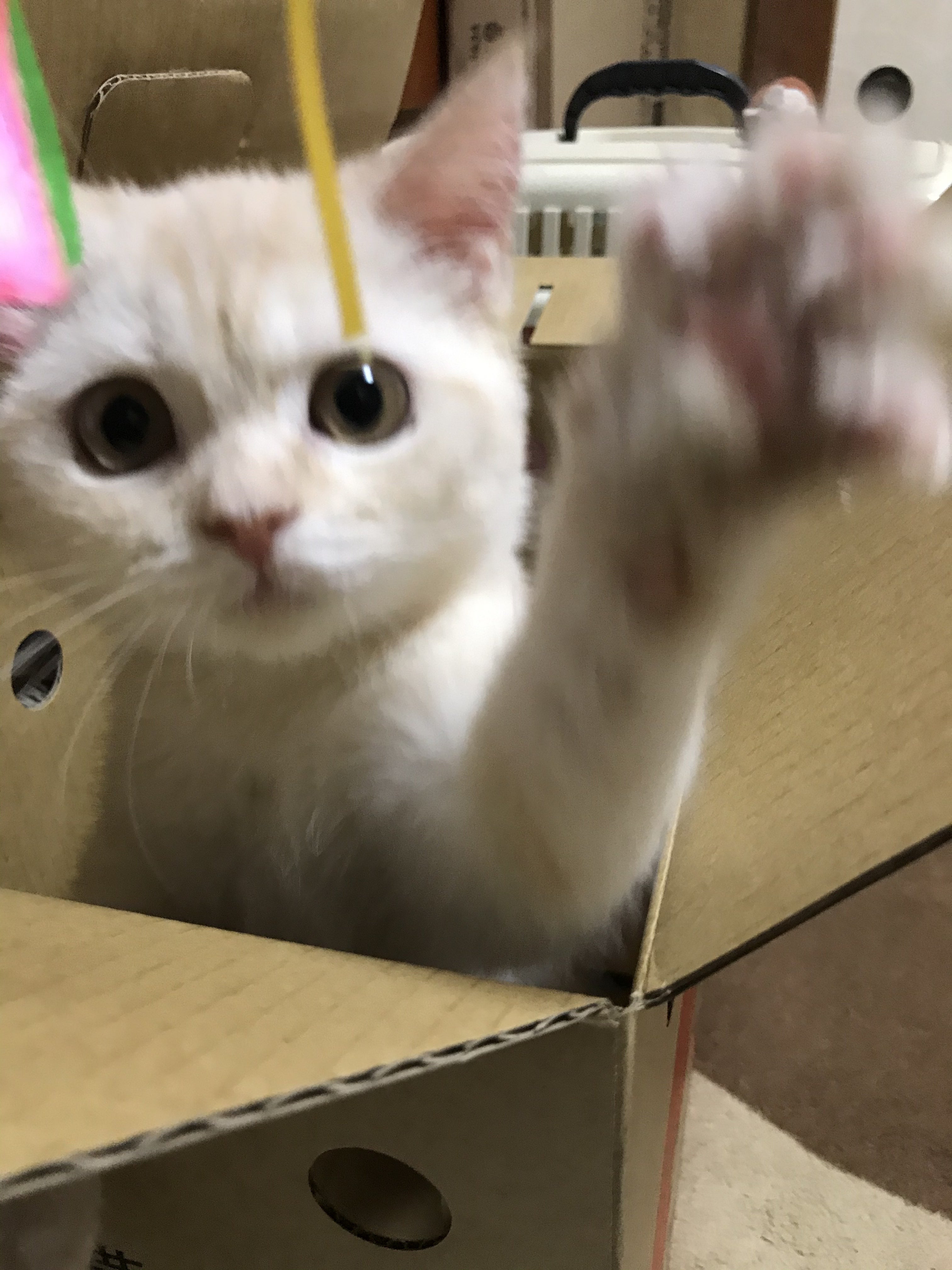 少し臆病なところもありますが、遊ぶのが大好きで毎日のように猫じゃらしに飛びついて活発な子でした。