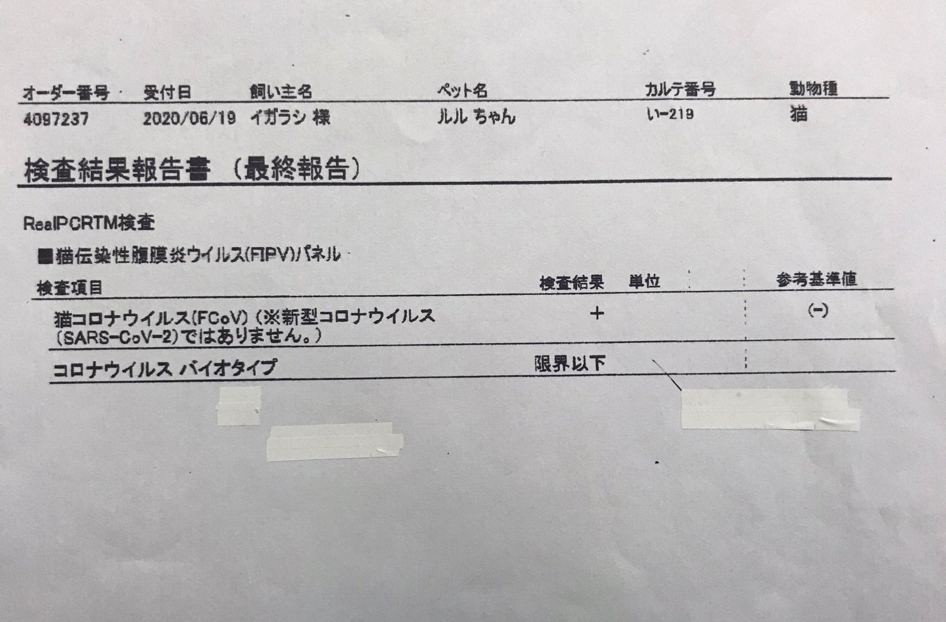 すると「FIPではありません」と言われました。結果には+陽性と書いてあるのに何で?と疑問に思いながらも帰宅しました。