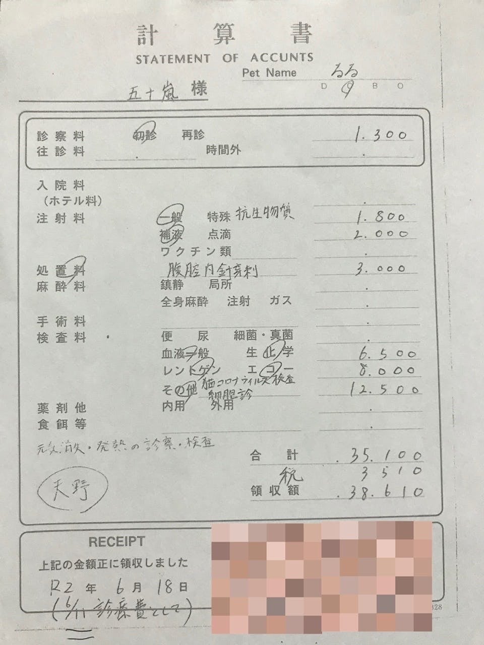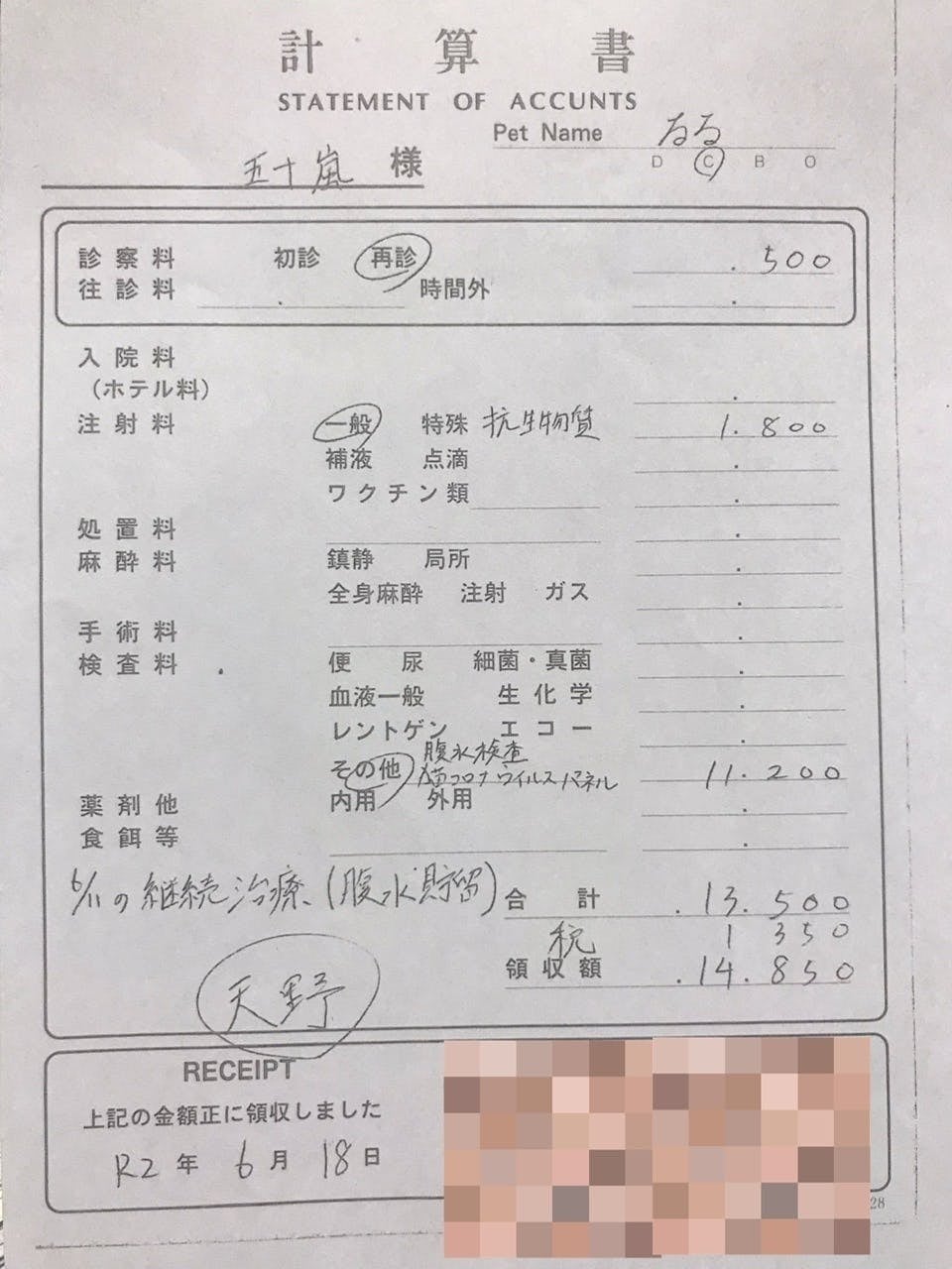 その日のうちに予約してあったセカンドオピニオンの病院をキャンセルしようと電話したところ、症状や血液検査の数値などを聞かれ答えると「ほぼFIP確定です」と言われました。