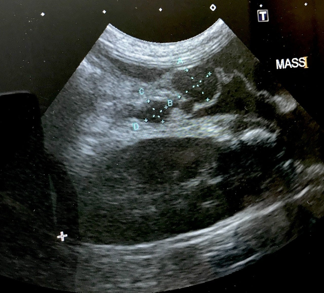 お腹に肉芽腫のようなものがあるとエコー写真を見せられ3センチほどの塊が写っていました。