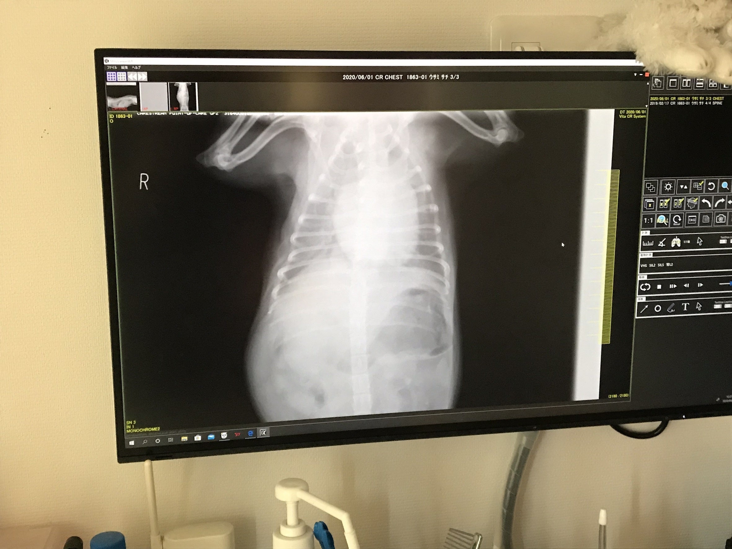 身体検査、血液検査、レントゲン撮影、酸素室治療を致しました。