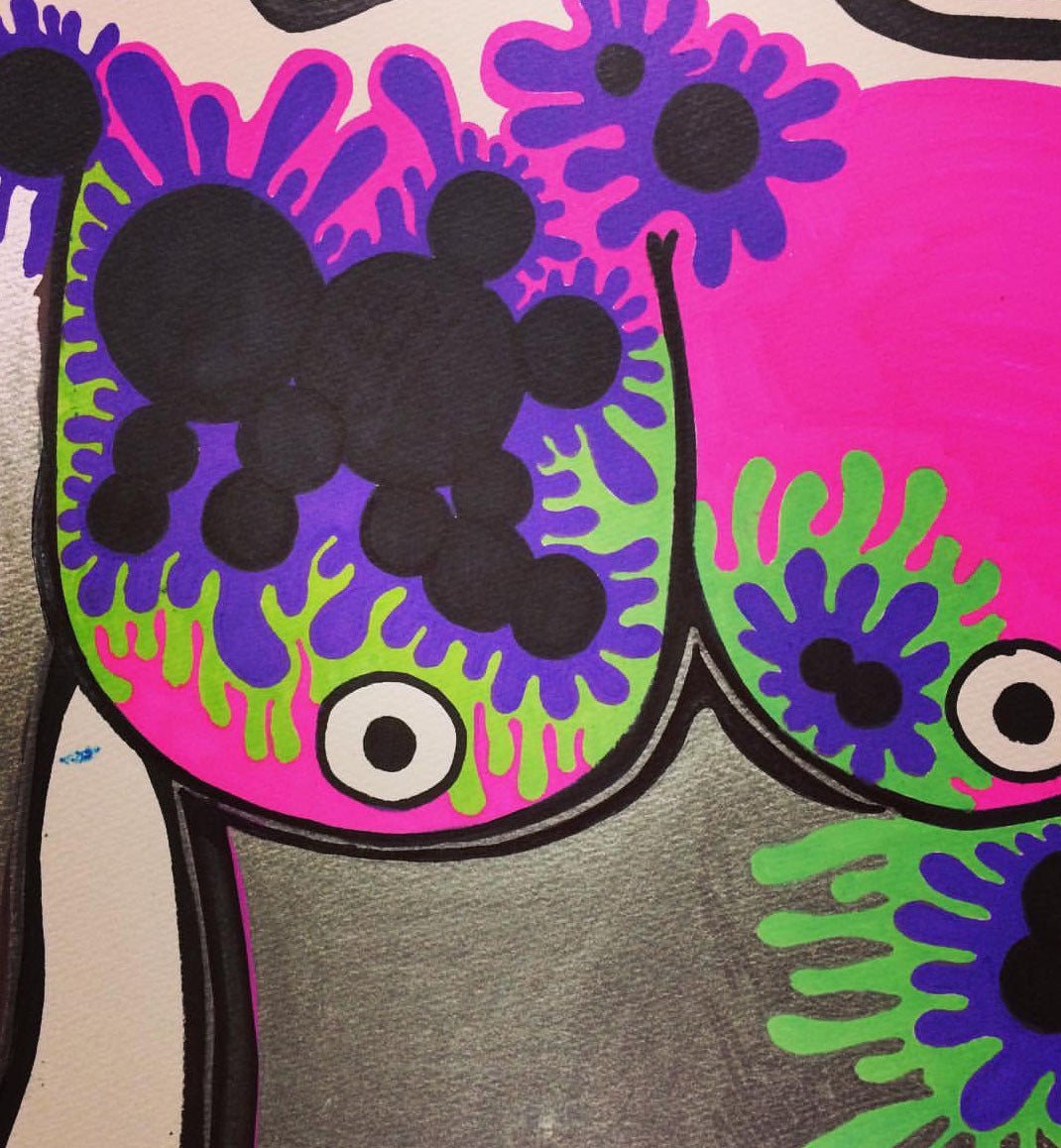 ・プロフィール:普段は原宿でスニーカーショップの店長として活躍。アーティストとしての活動実績は、お店のロゴ制作、似顔絵、店内装飾用の絵画、zine作成、イベントでのライブペイント、展示、アパレルショップのオリジナル商品のデザイン等々。2020年7月には原宿のデザインフェスタギャラリーにて個展開催。
