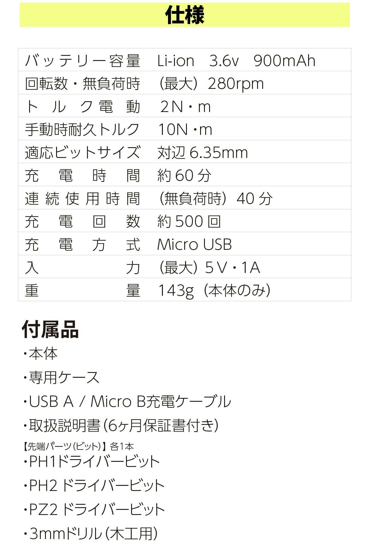 満充電までわずか90分。無負荷時での連続使用時間も40分ありますので、家具の組み立てには十分です。