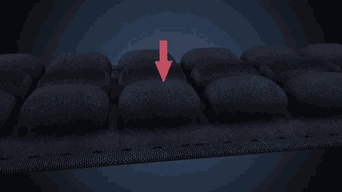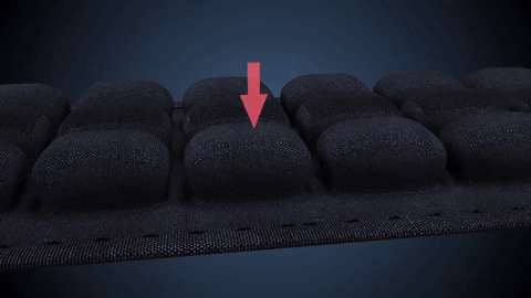 仮に1個のエアセルを押し込むと、空気がほかのエアセルに行き膨らみます。