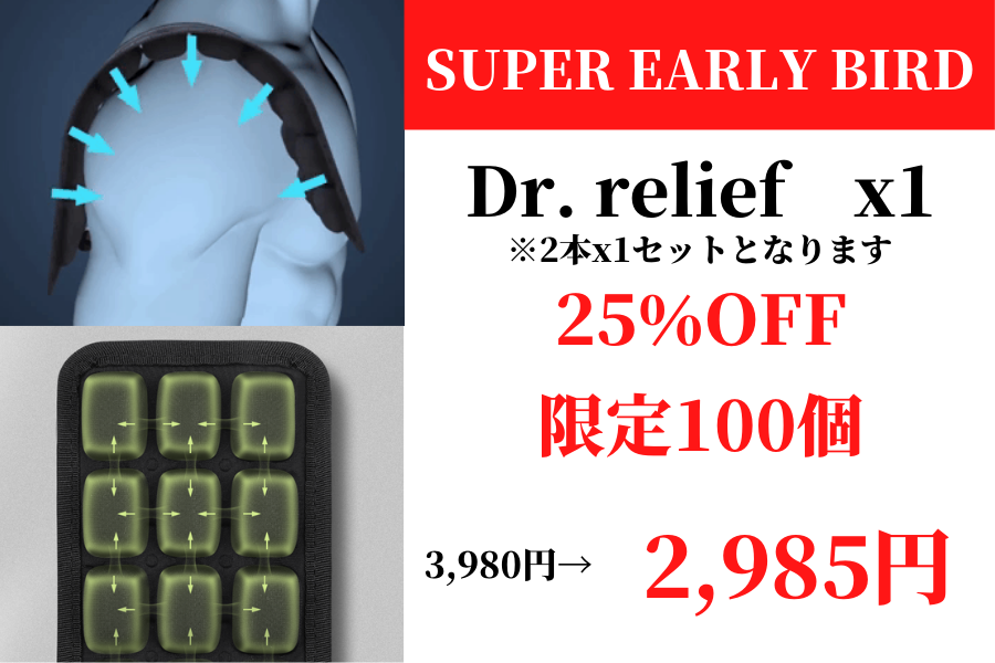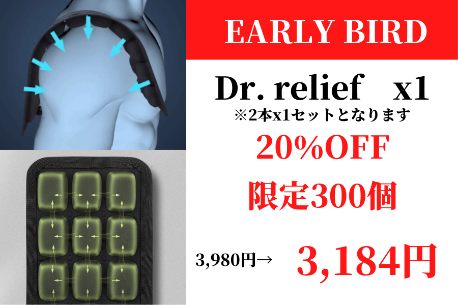 あなたの体の負荷をできる限り軽減できますよう、「Dr.relief肩パッドクッション」が開発されました。