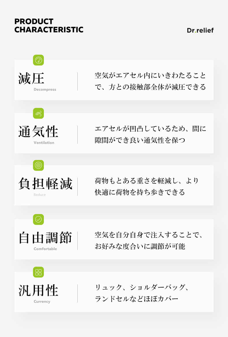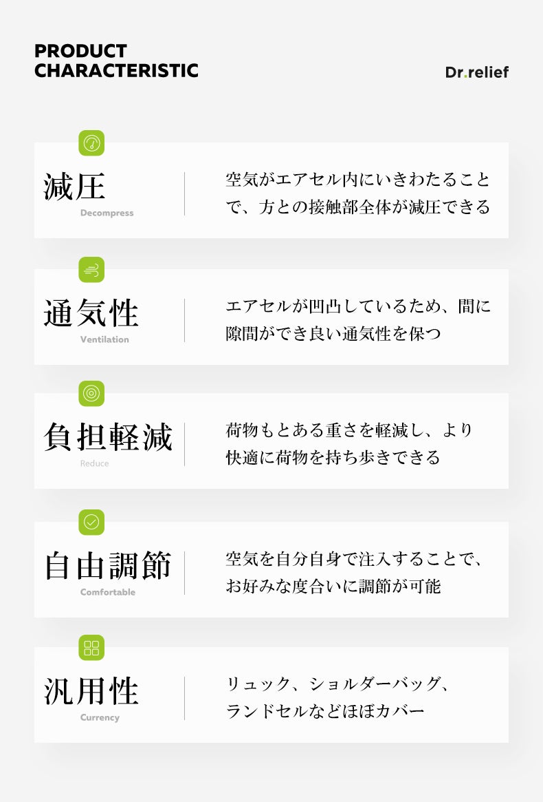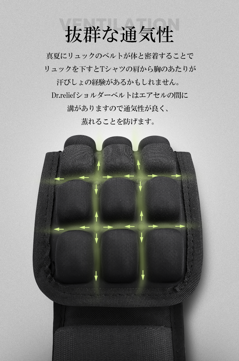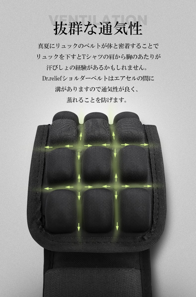 Dr.reliefのショルダーベルトクッションは、27個のエアセルからできており、