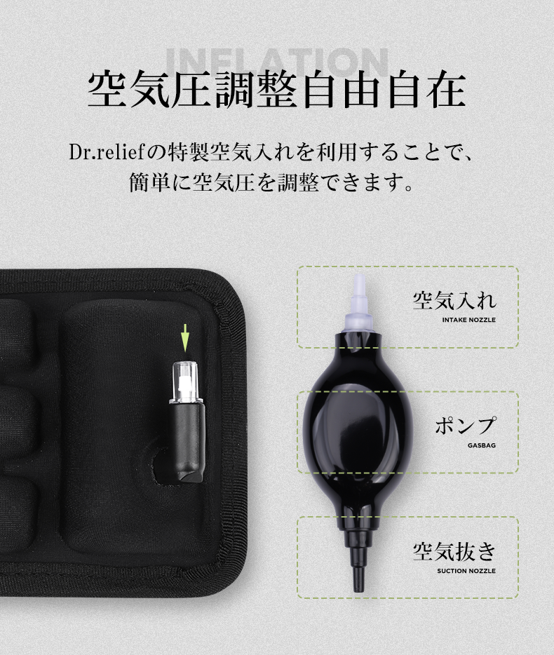 Dr. reliefの一つの特徴として、空気が固定ではなく、自ら入れることができますので、