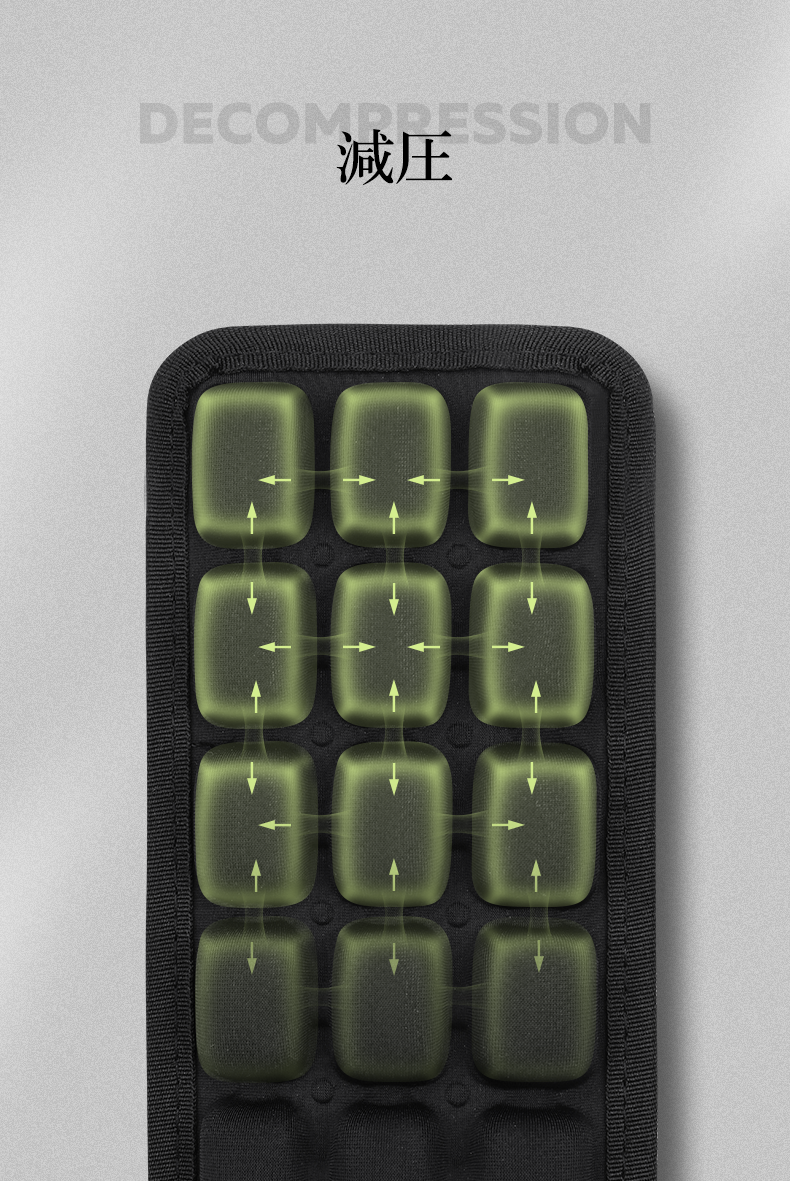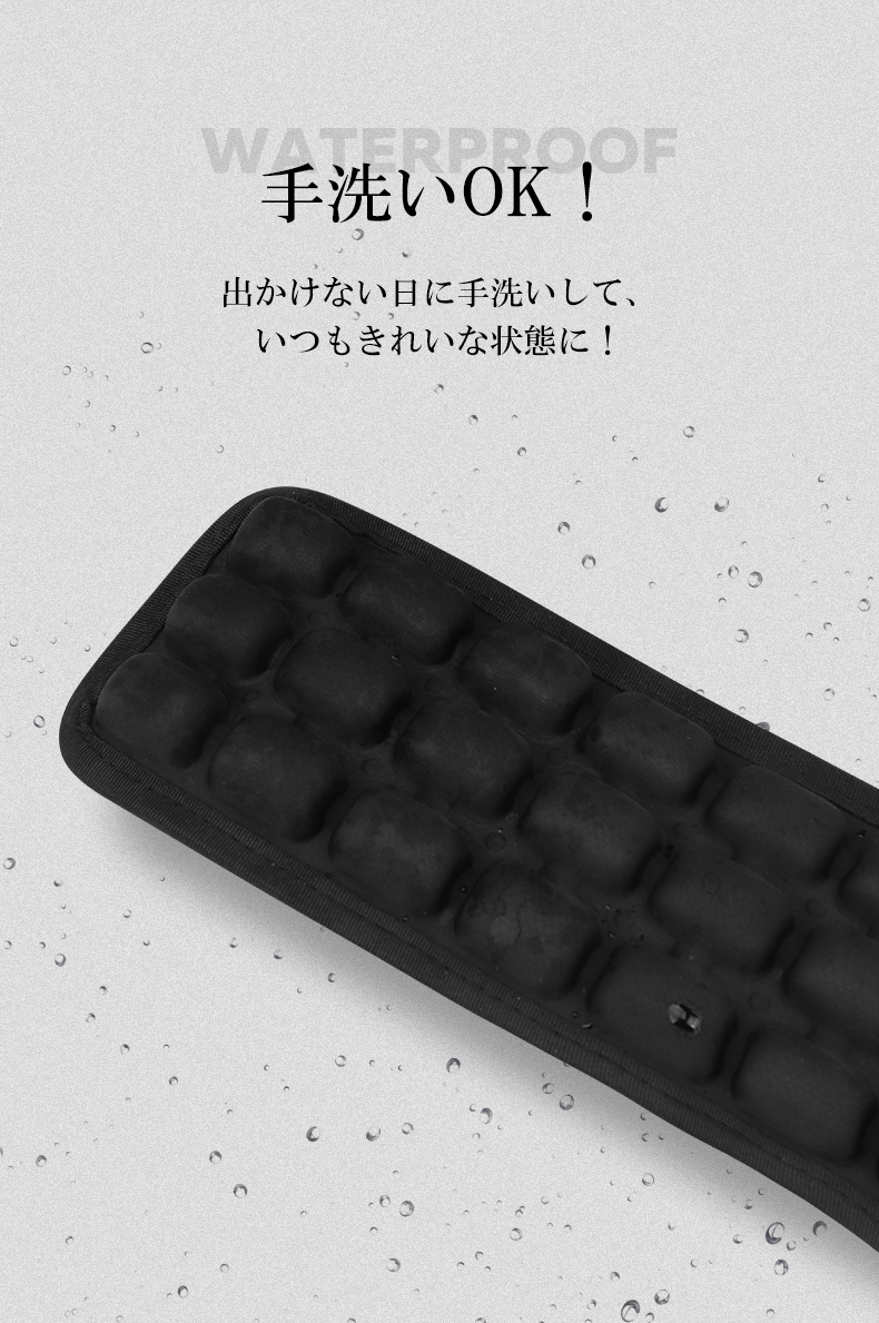 減圧はもちろん、でこぽこの形しているため通気性が良く、また広い幅からほとんどのバッグを対応します。
