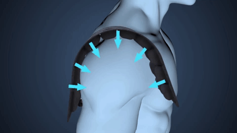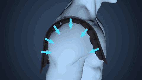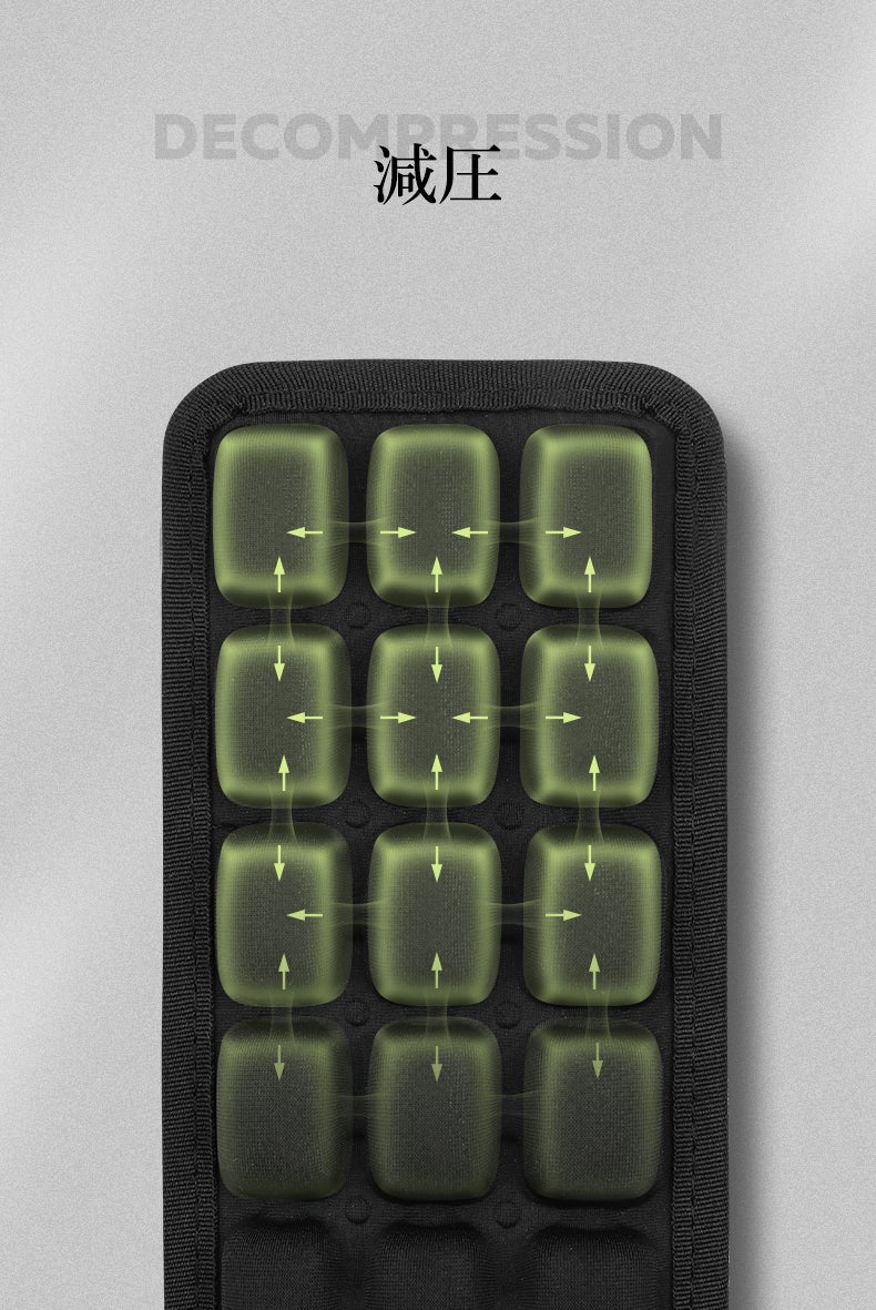 肩の負担を軽減できるエアクッションです。27個のエアセルより形成され、中に空気が行きわたることで、