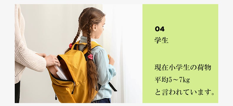 重い荷物は、子供から大人まで幅広い年齢層に影響を与えています。