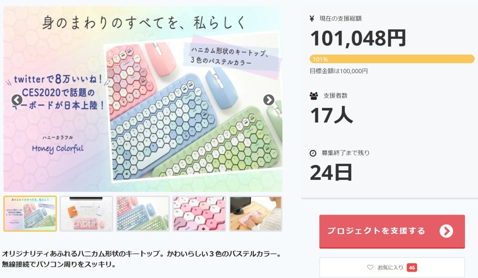 初めまして!合同会社リヴェント、ハニーカラフルのプロジェクトチームです。この度は「ハニーカラフル」に興味をお寄せいただきまして、誠にありがとうございます。本日、ついに目標金額に到達しました!ご支援いただき本当にありがとうございます^^今後はこの活動報告を通して進捗などを皆様に共有していきます。プロジェクトは後24日間となります。引き続きハニーカラフルをよろしくお願いいたします。