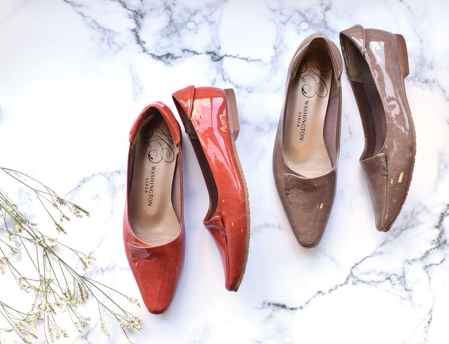 履き心地の良いフラットソールに履き回しの良いシンプルなポインテッドトゥで、年間1,200足以上売れ続けているWASHINGTONの大人気ロングセラー。