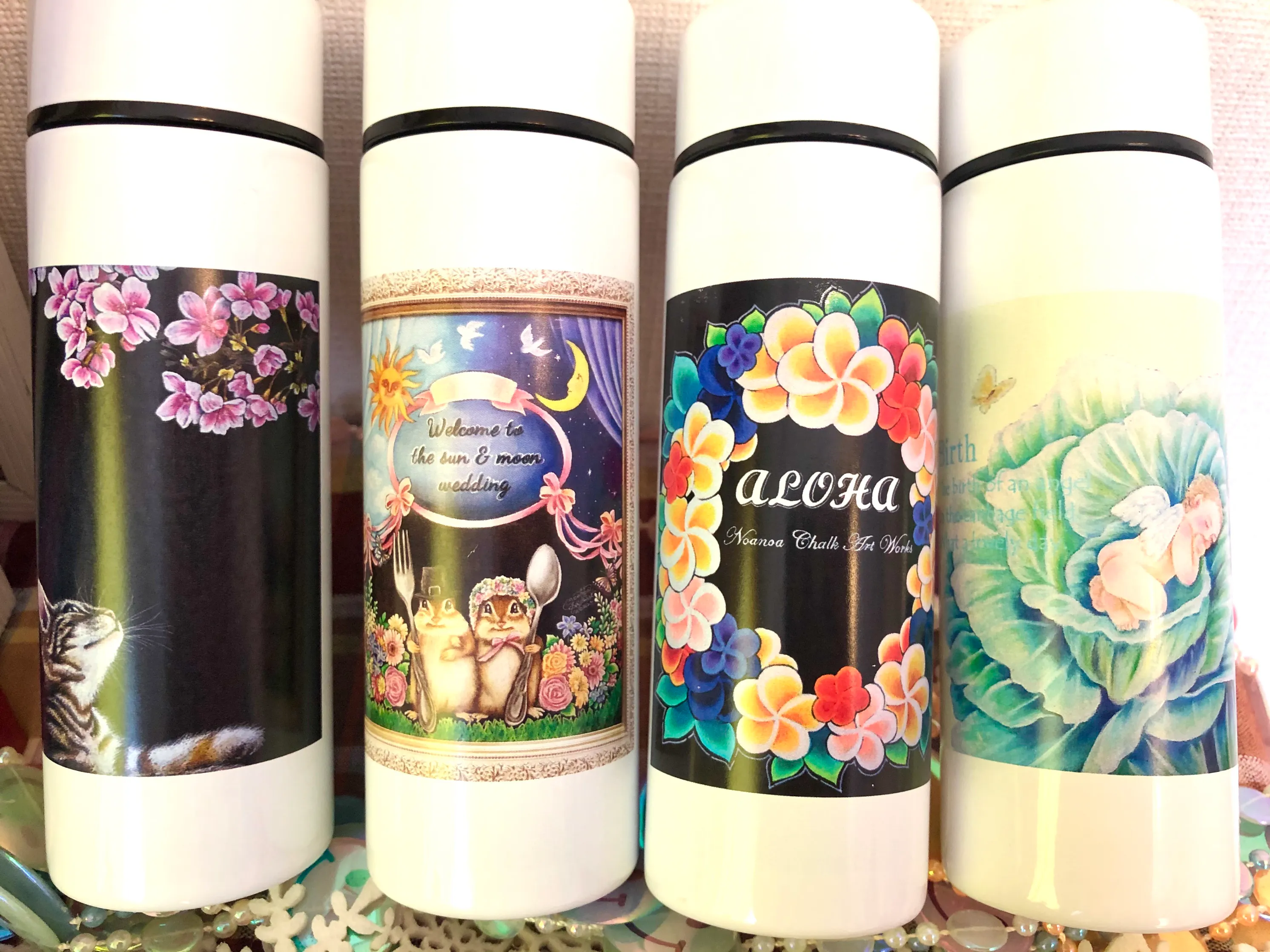 3、チョークアート作品をプリントしたミニボトル