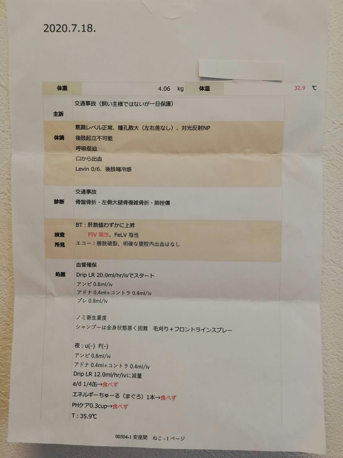 ※7/28 以降の「容態・治療」は「活動報告」にて記載させていただいてます。