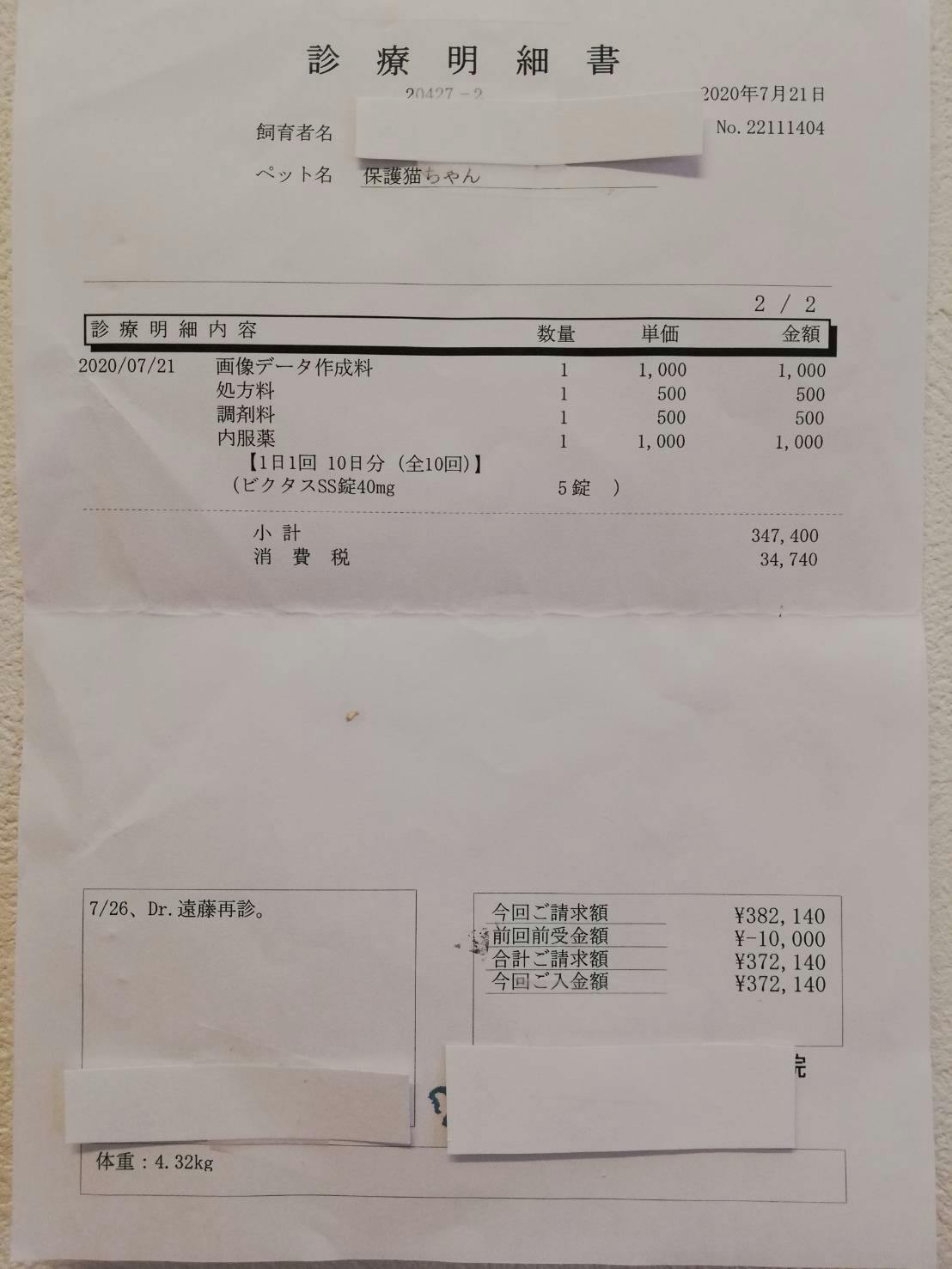 ・腎臓の治療、排尿機能の治療と入院費(7/26〜2週間前後の予定) 231,924円