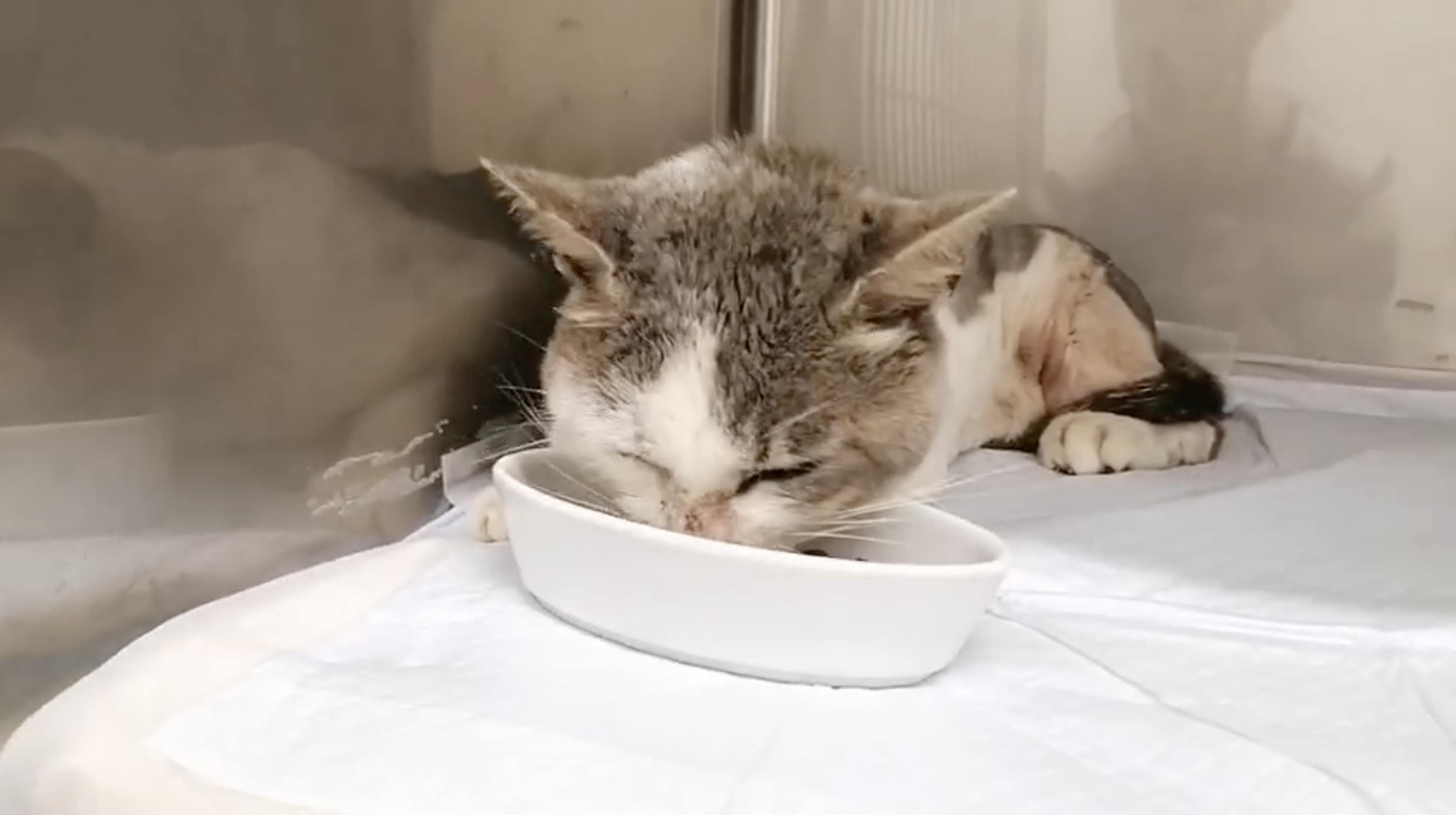 下半身を引きずり転げ回りながらもなんとか歩道まで逃げてくれたネコちゃん。