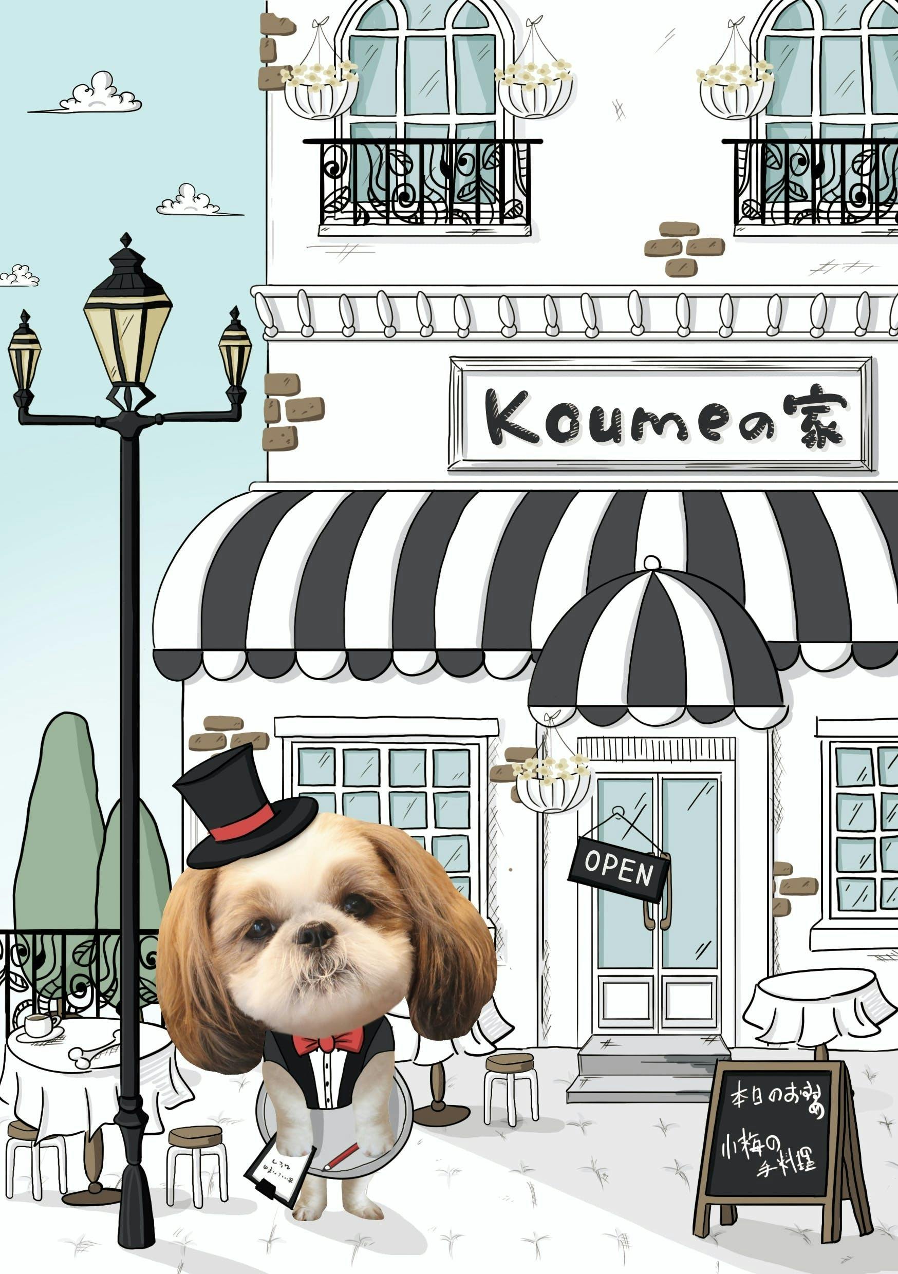 こちらのわんこの写真をご希望のお写真を加工したものに差し替え致します。
