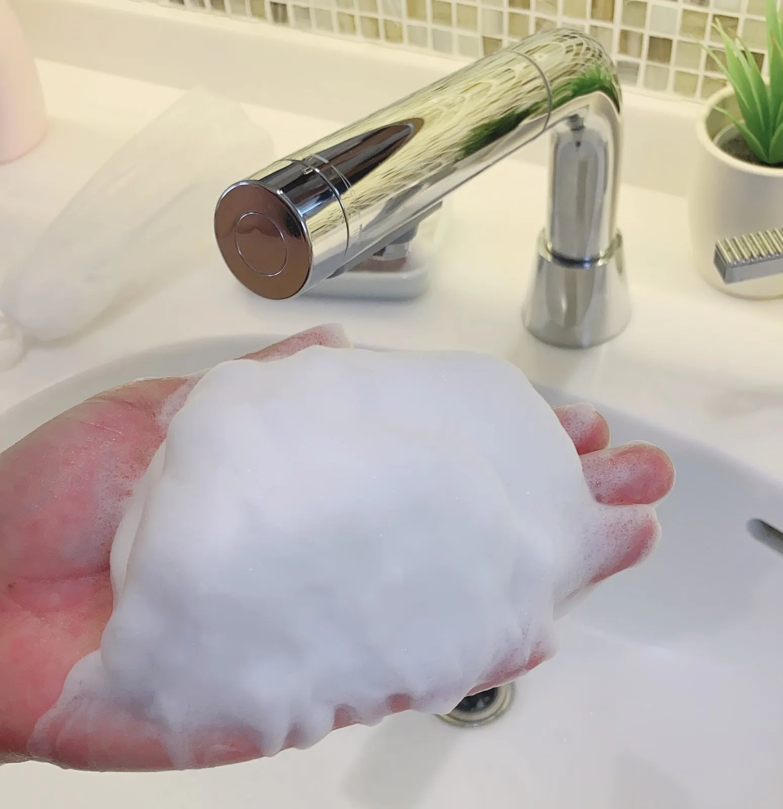 発泡剤を入れていないため、泡立ちは悪いです。洗顔ネットを使うことで、気持ちの良い細かい泡が生まれます。