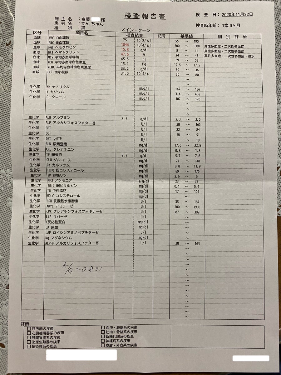 投薬終了してからの初めての血液検査等でかなり緊張しながら祈るように検査結果を待っていましたが、結果は「良好」でした!